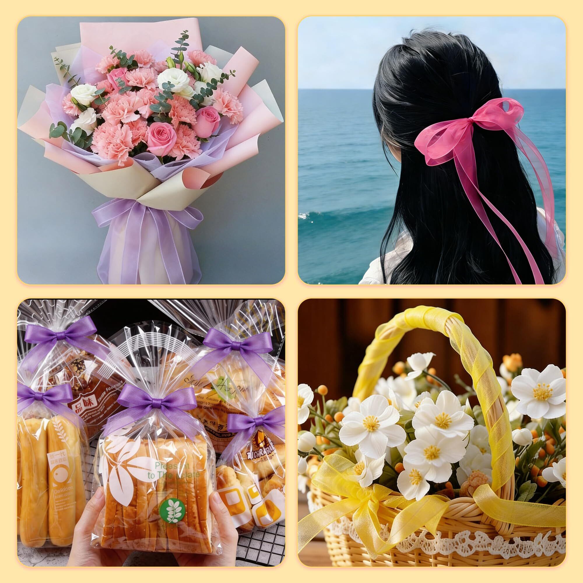 【人気商品】オーガンジーリボン 20mm 45メートル ギフトラッピング シフォン 太め 飾り DIY 手芸用 クリスマス (ピンク)
