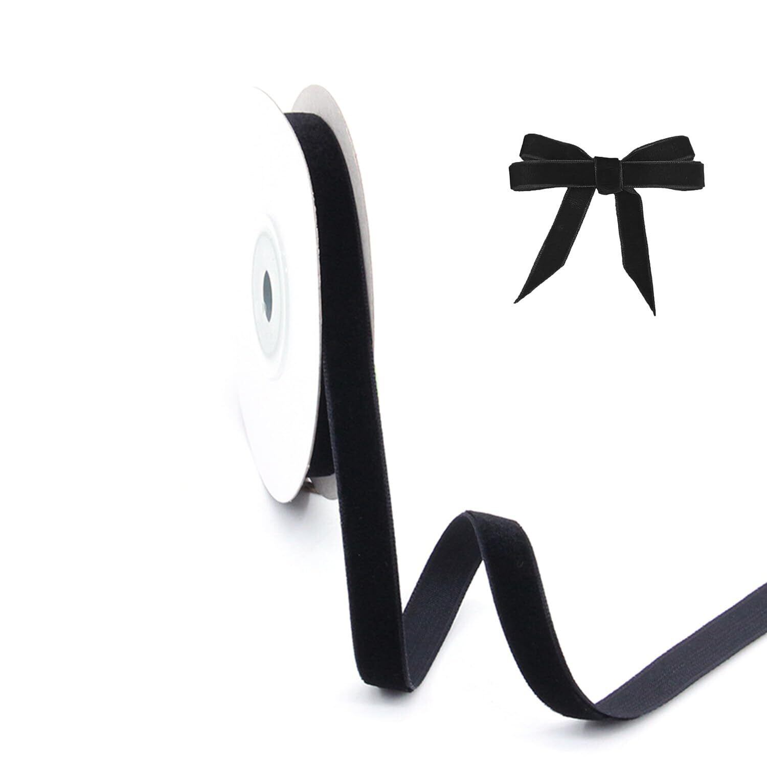 ChasCoCo ベルベットリボン 幅1 cm 長さ5ヤード シングル フェイス スプールシルキー ヴィンテージベルベットリボンスプールは デコレーションギフト DIY工芸品 ギフト包装リボン 装飾用 ブラック