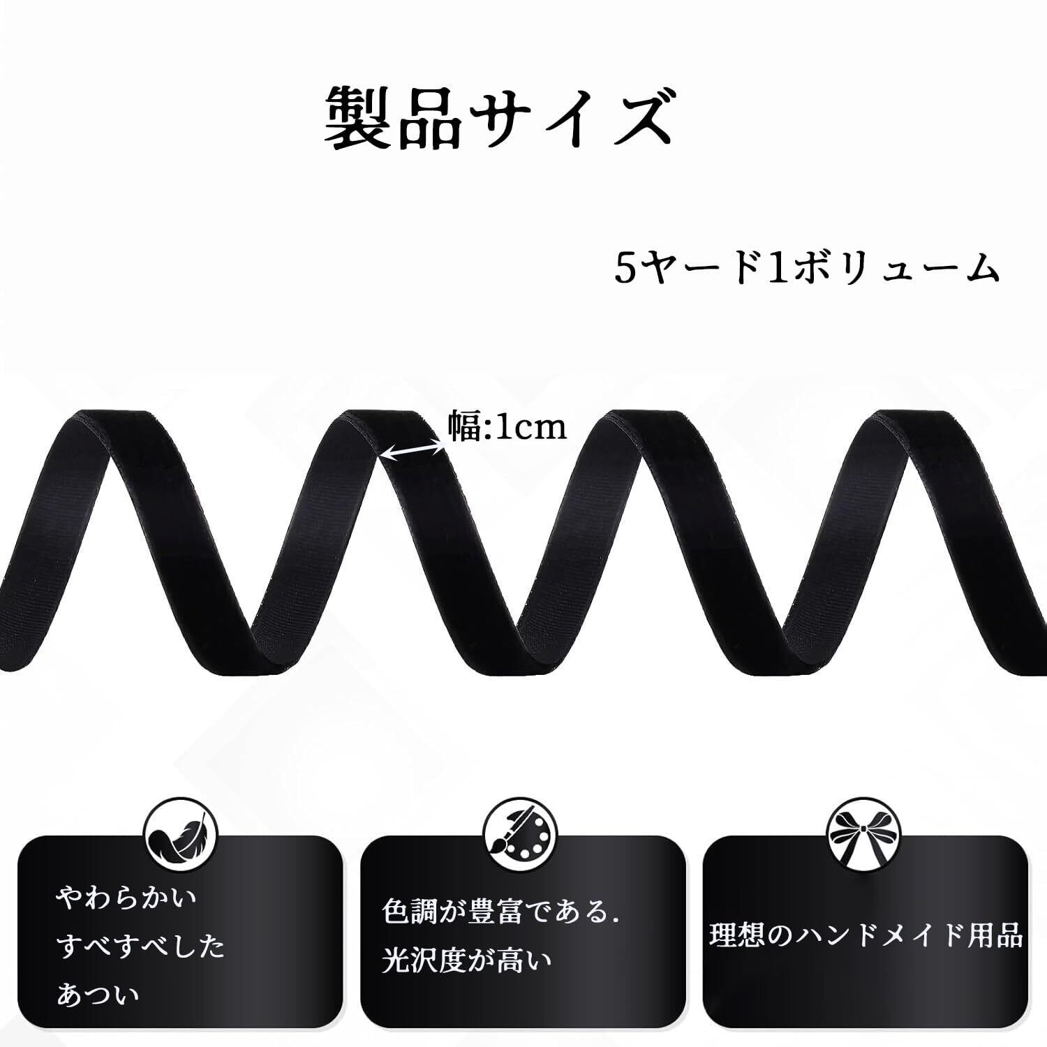ベルベットリボン 幅1 cm 長さ5ヤード シングル フェイス スプールシルキー ヴィンテージベルベットリボンスプールは デコレーションギフト DIY工芸品 ギフト包装リボン 装飾用 ブラック