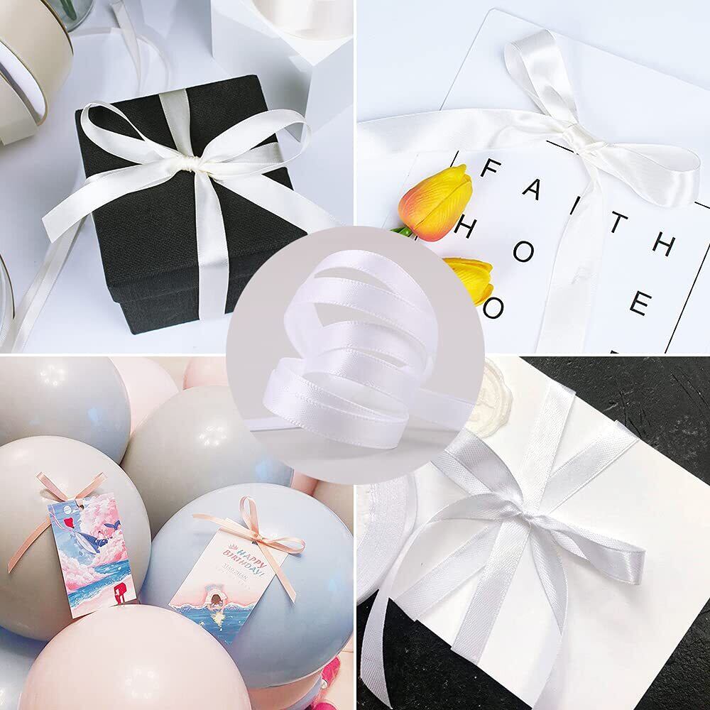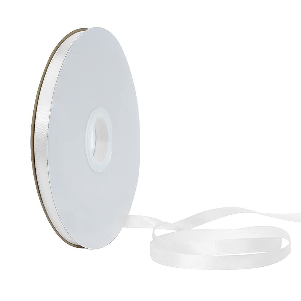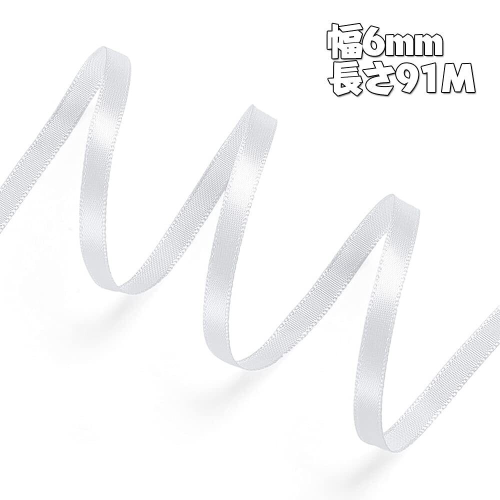 両面サテンリボン 幅6mm 長さ91m ちょう結び リボン 無地 光沢ある 手芸用品 アクセサリーパーツ 手作り ハンドメイド DIY ラッピング 髪飾り イアリング などのDIYに (ホワイト)