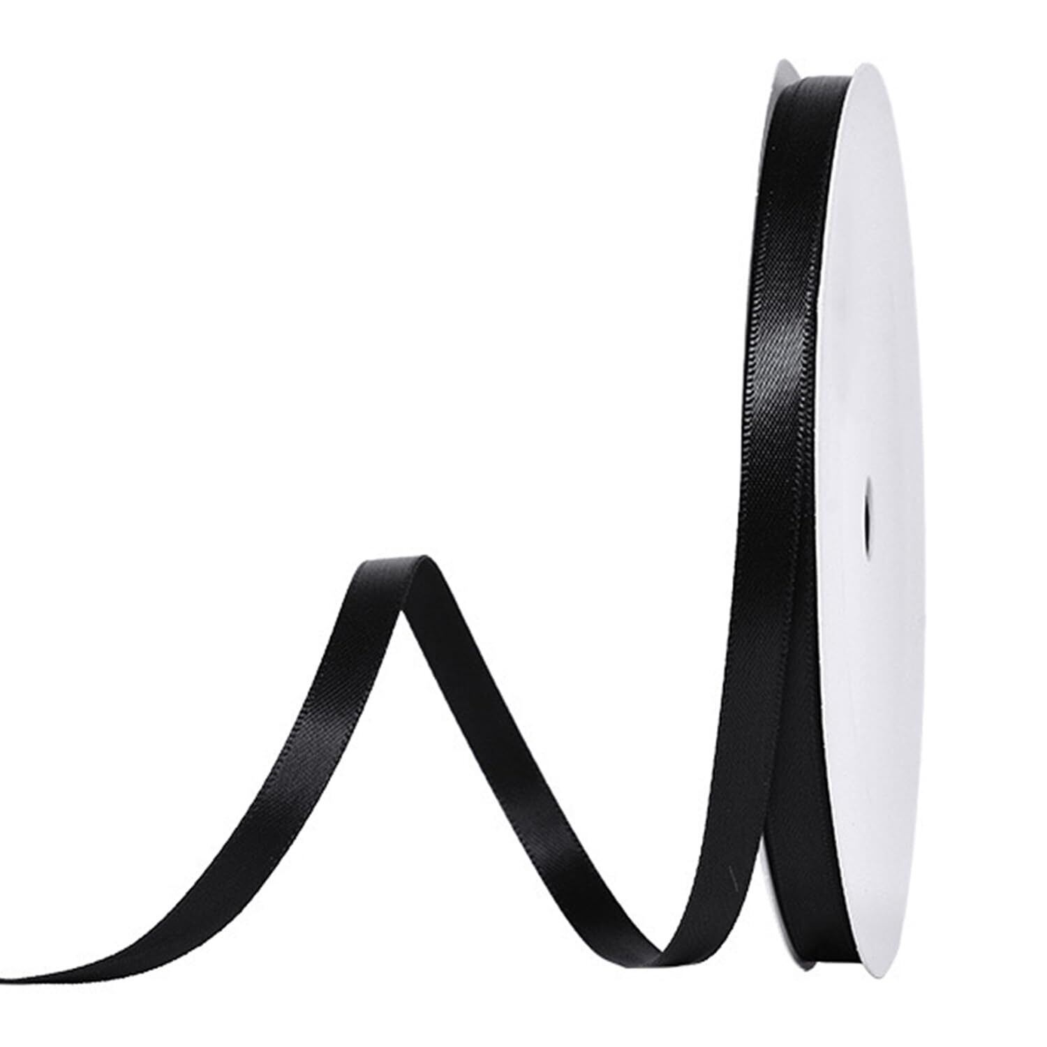 【人気商品】両面サテンリボン ブラック 幅6mm 縦100ヤード 約91m 大容量 ギフトラッピング用 リボン ちょう結び 包装 贈り物 プレゼント用 細巾 長い お徳用 クラフト 手作り ハンドメイド DIY 手芸用品 アクセサリーパーツ 髪飾り素材