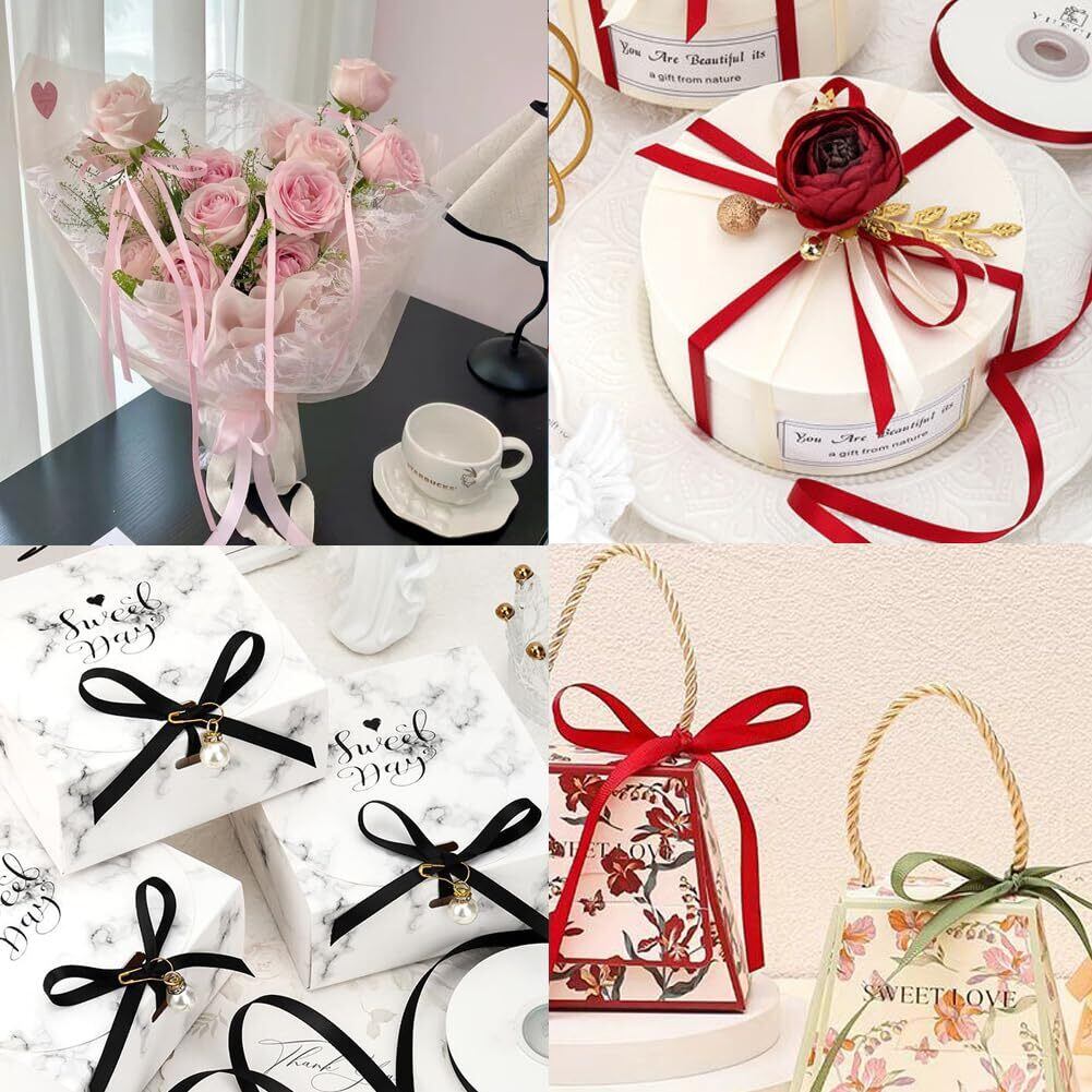 91メートル 大容量:たっぷり91M入った、お徳用パック!これらの両面サテンリボンは大人気のギフトラッピングアクセサリーです。ハサミで簡単にカットできて誕生日プレゼント、結婚祝い、記念日のギフト、お土産、ホリデーギフト、招待状、手工芸品など、あらゆる種類のギフトボックスの包装に適しています