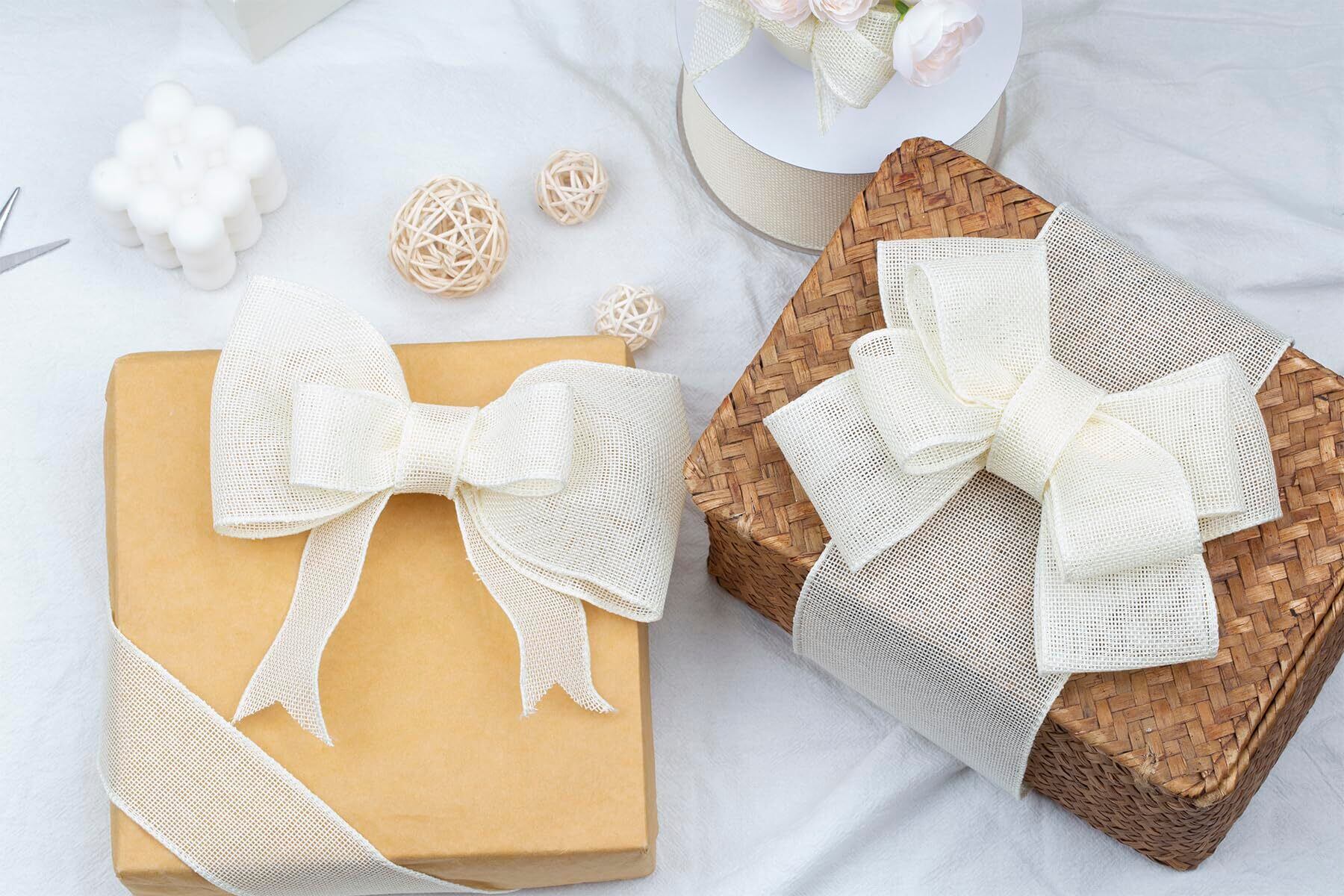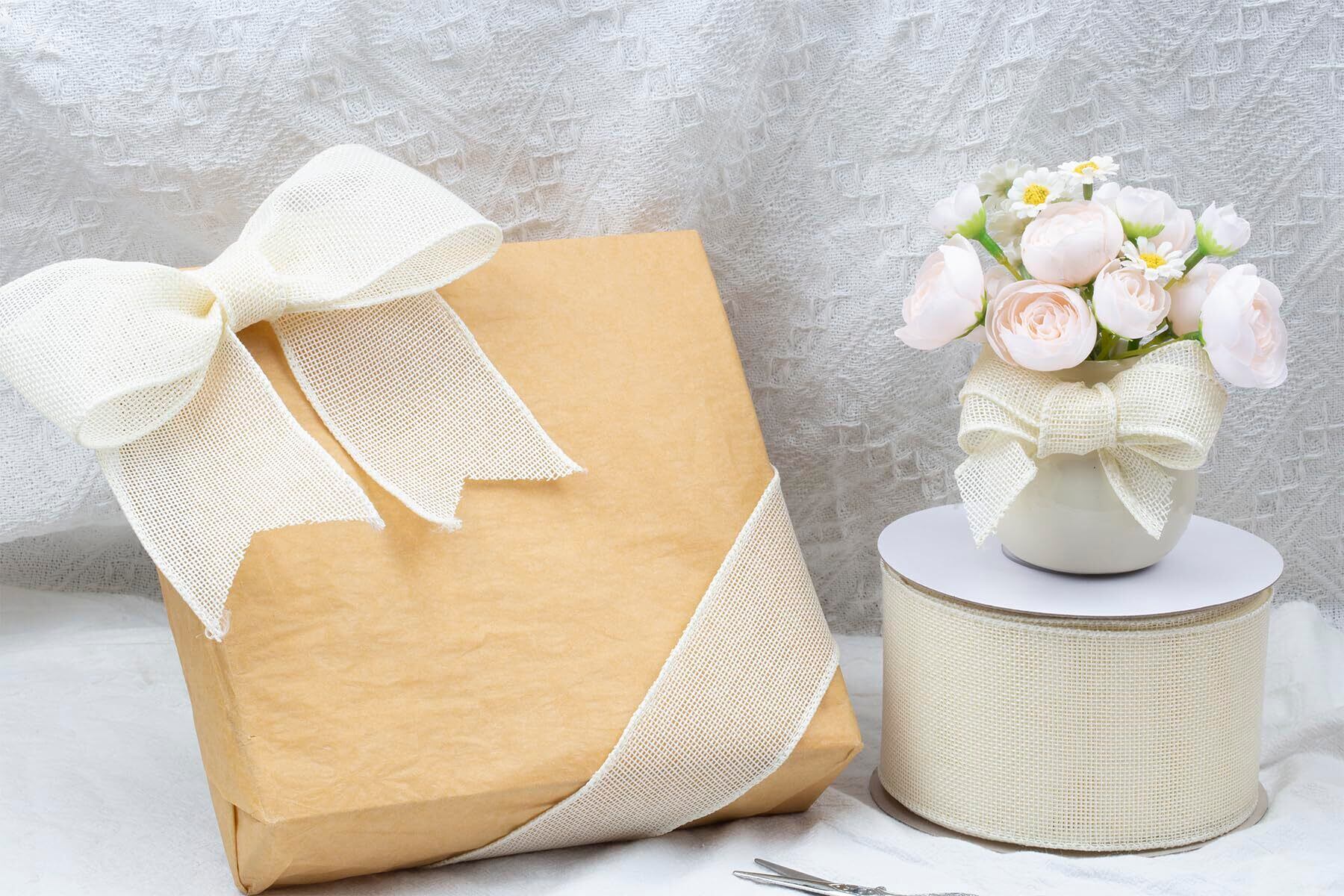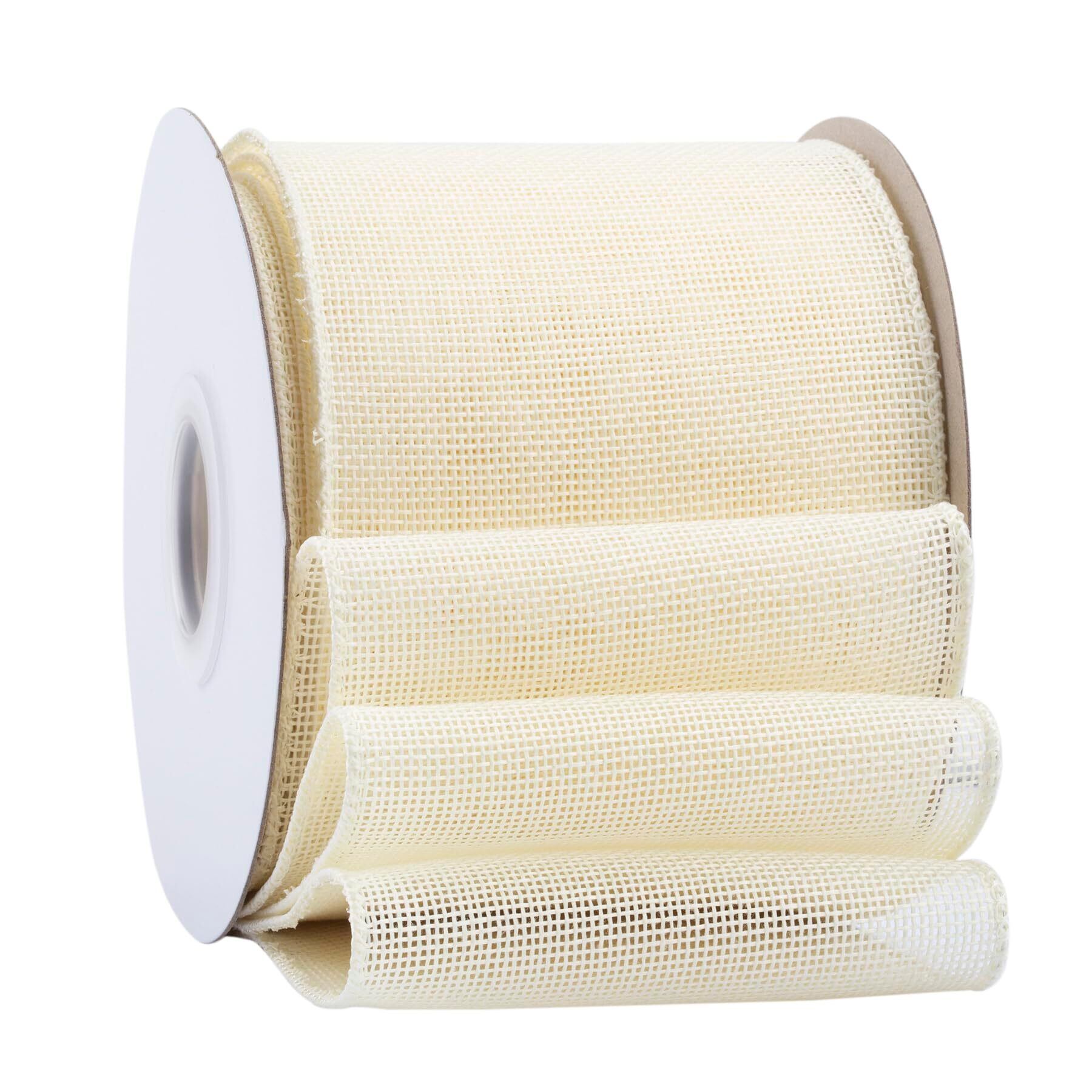【2022最新】幅100mm バーラップワイヤーリボン 長さ18m ギフト包装、蝶結びの作り方、ナチュラルなウェディングの装飾、クリスマスツリーの飾りに最適 #810アイボリー