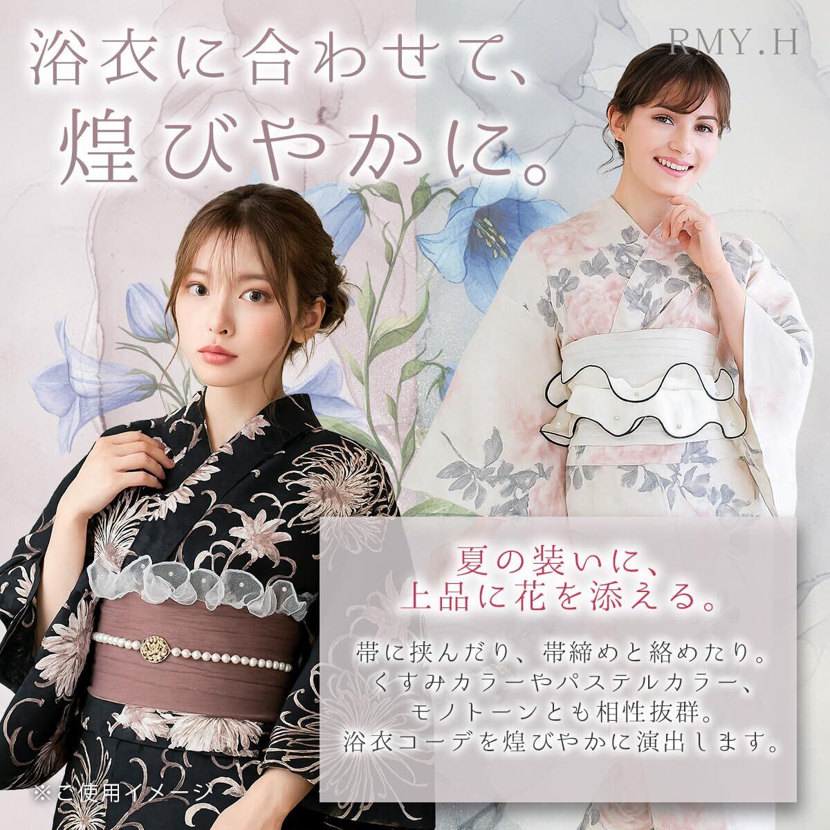 オーガンジーリボン 浴衣 帯 飾り 2m ブーケ 飾り レース生地 フリル ハンドメイド (ホワイト)