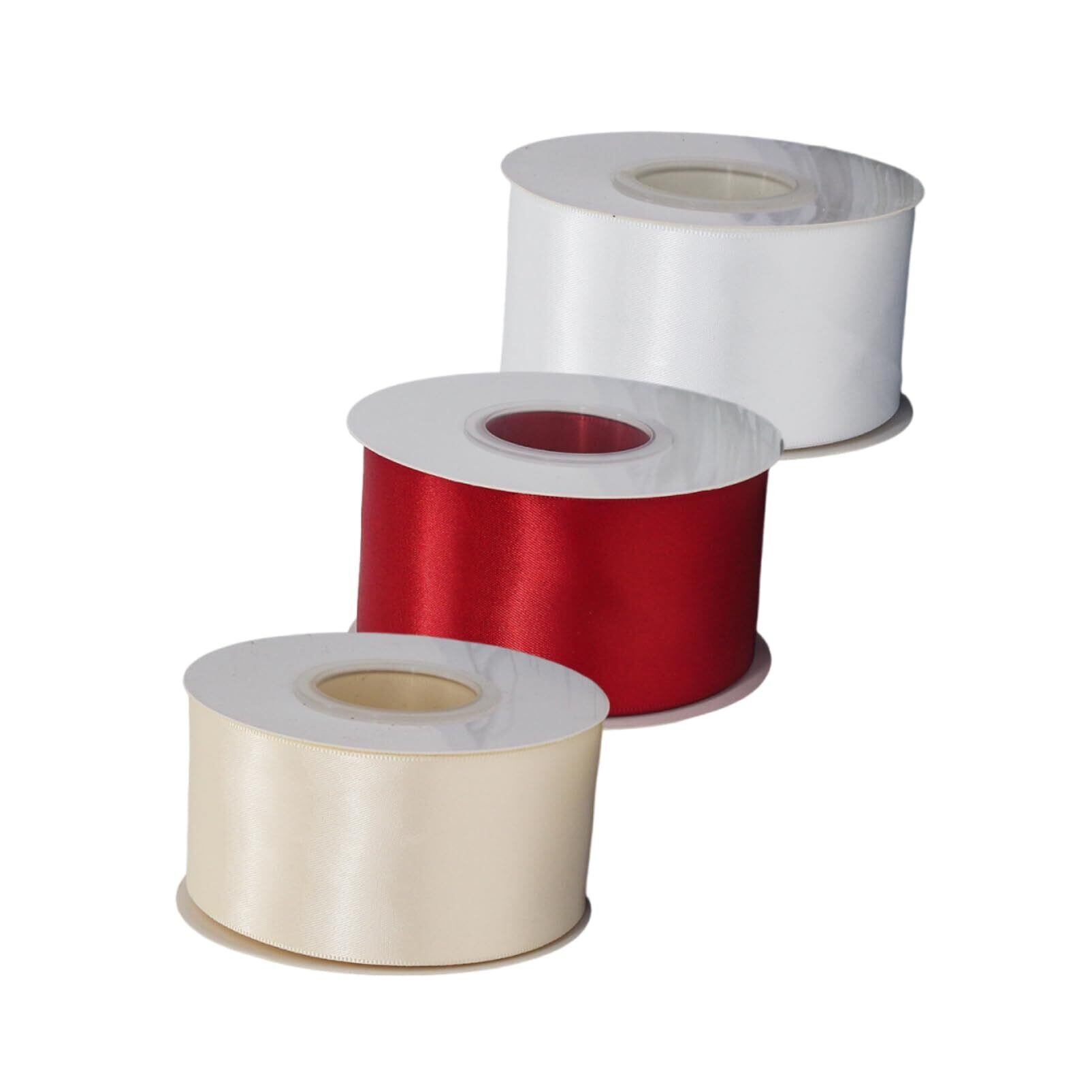 サテンリボン 50mm 両面 ギフト 花束 ラッピング (白 ホワイト)