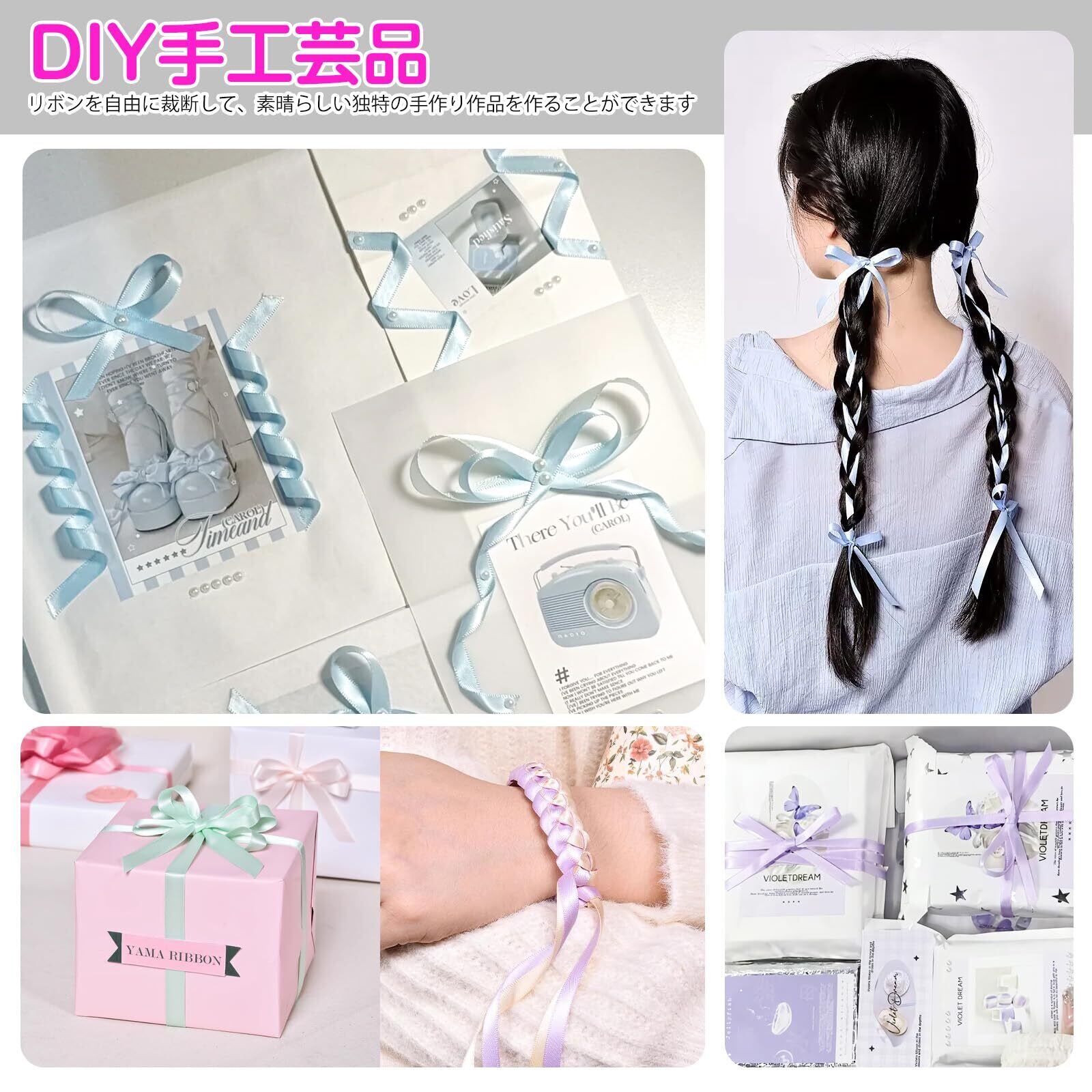【DIY手工芸品】リボンを自由に裁断して、手作りの髪飾りやチョークー、ブレスレット、アクセサリーなどの素晴らしい独特の手作り作品を作ることができます