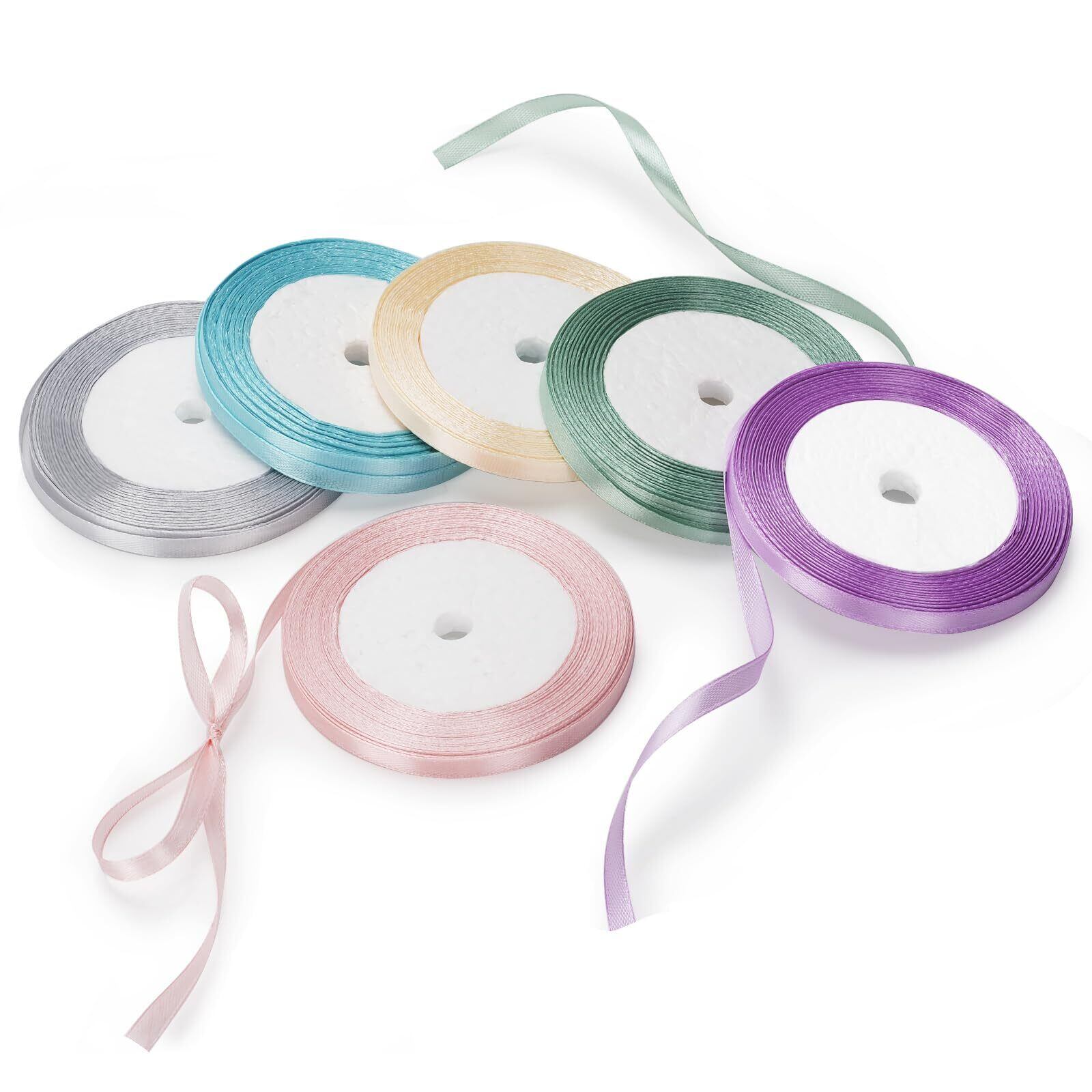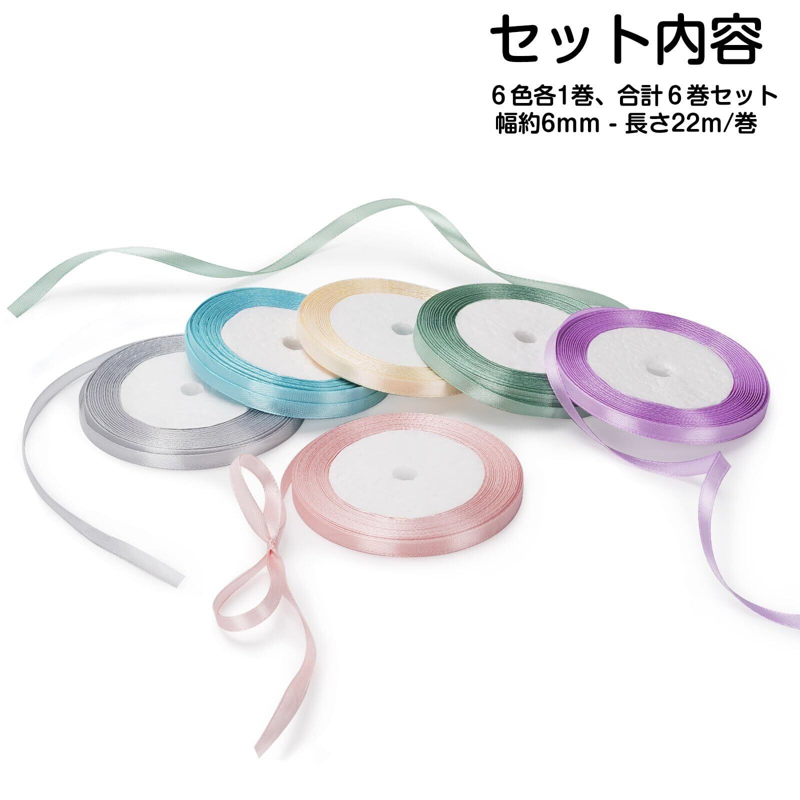 【セット内容】6色各1巻、合計6巻セット。サイズ:幅約6mm、長さは22m/巻。ご注意:ほつれや緩みを防ぐために、カットされたリボンの両端をシールする必要があります