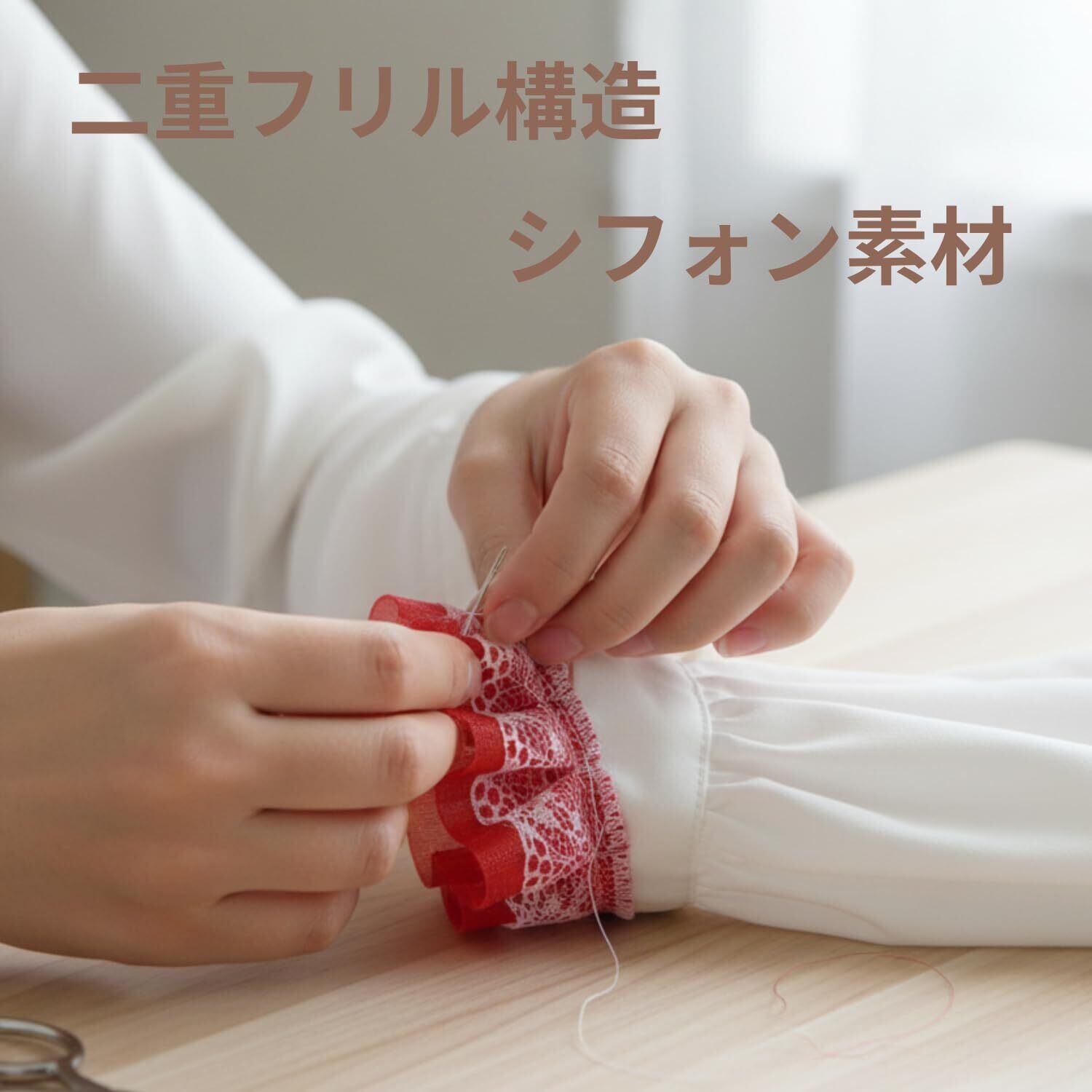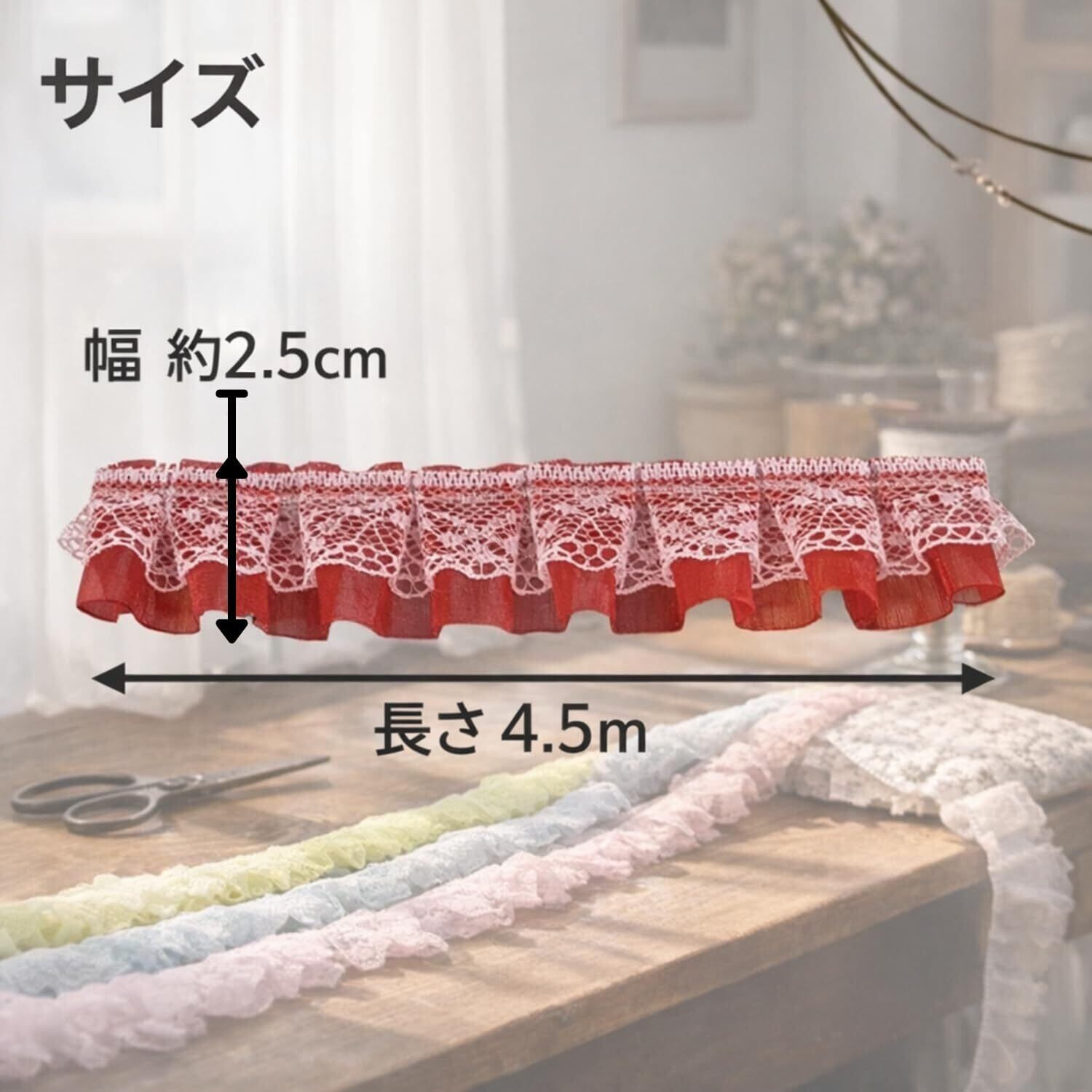 【二重フリル構造で立体感のある仕上がり】 単層レースでは表現しにくい、二重フリル構造を採用。重なりによる自然な立体感が生まれ、作品に奥行きと華やかさをプラスします。見た目の違いが分かりやすく、装飾性を重視するハンドメイド用途に適したレースリボンです。