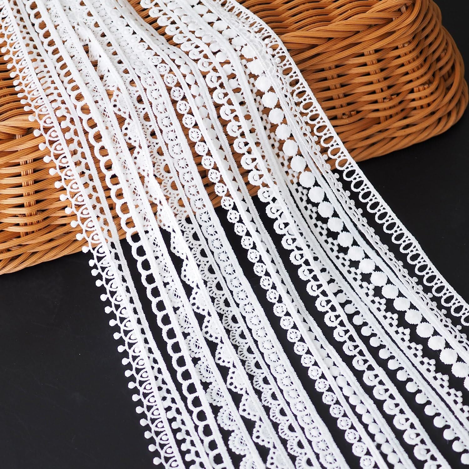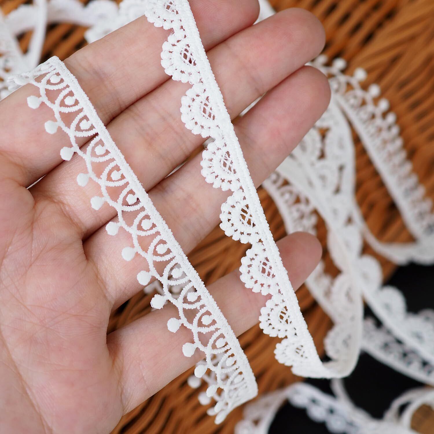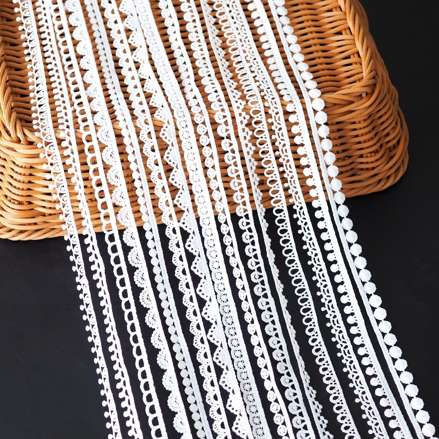 【装飾材料】:レースリボンはお財布やネックレス、ブレスレットなどのDIYハンドメイド手芸素材や、アルバム、日記、手帳の飾りの手芸用品にも。華やかさをプラスしながら、自分だけのオリジナルグッズを作りますよ。