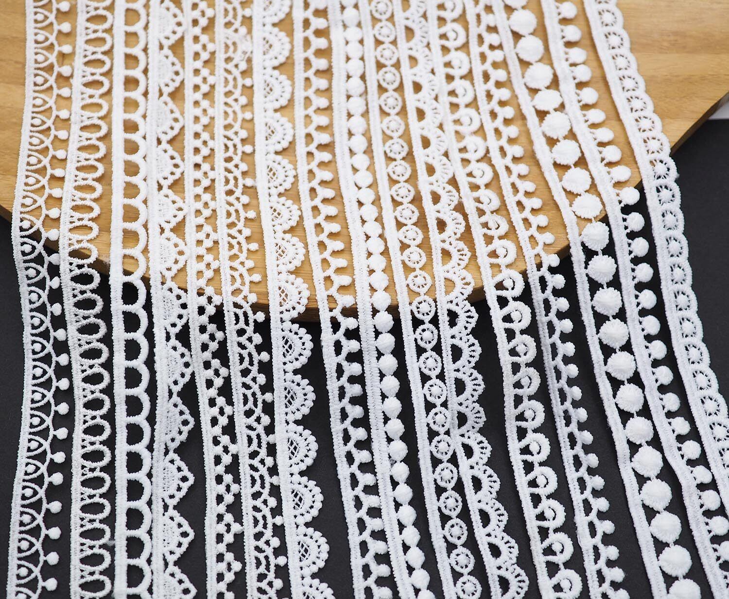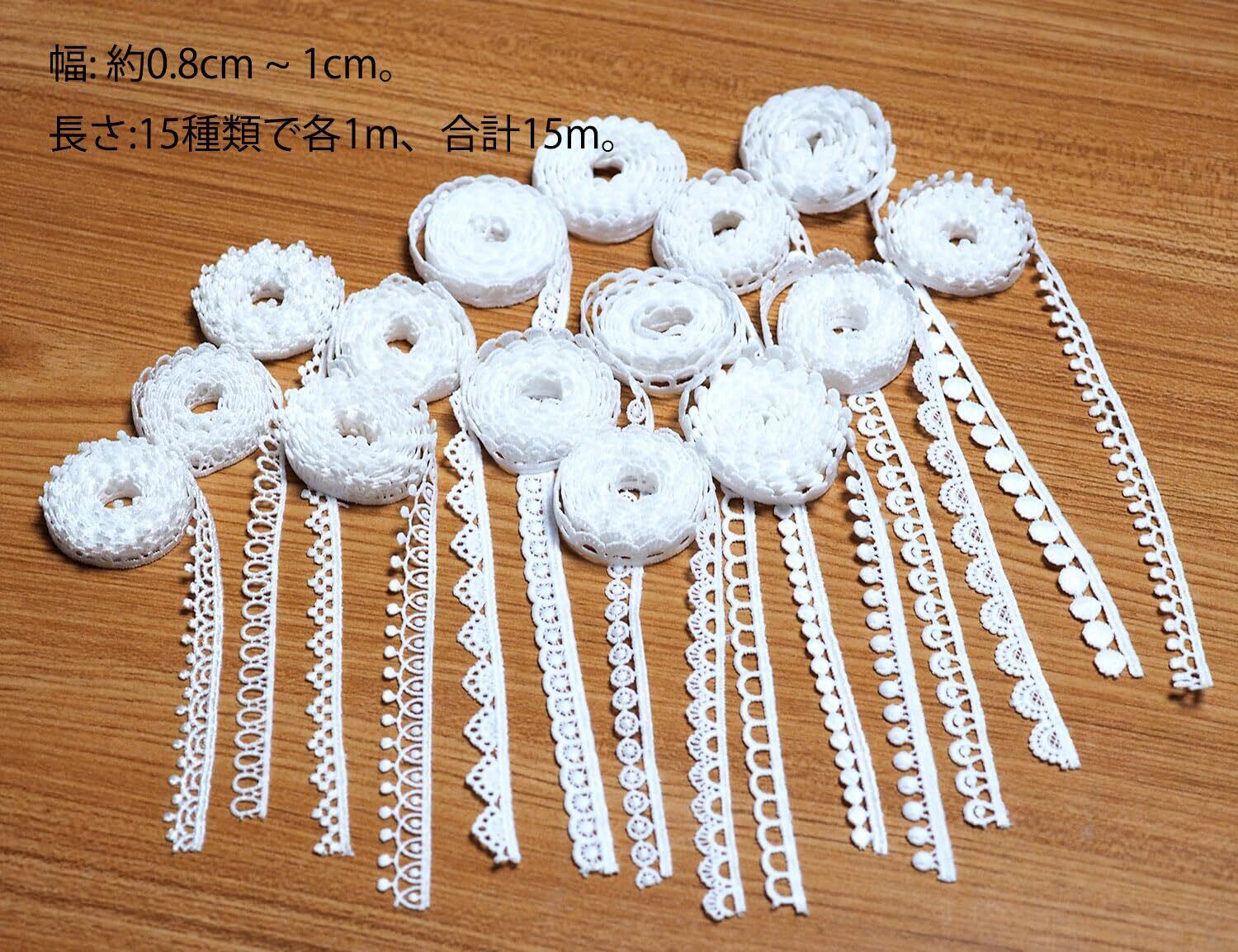 sempiterno 15タイプのホワイトミニ花柄レース生地 ミルクシルク髪飾り刺繍レース シングル長さ約1m ウェディング糸ホームテキスタイル布地刺繍バーコードDIY補助材料 誕生日 クリスマス ギフト 装飾材料 縫製素材 (1.2cm&1.0cm&0.8cm, ホワイト)