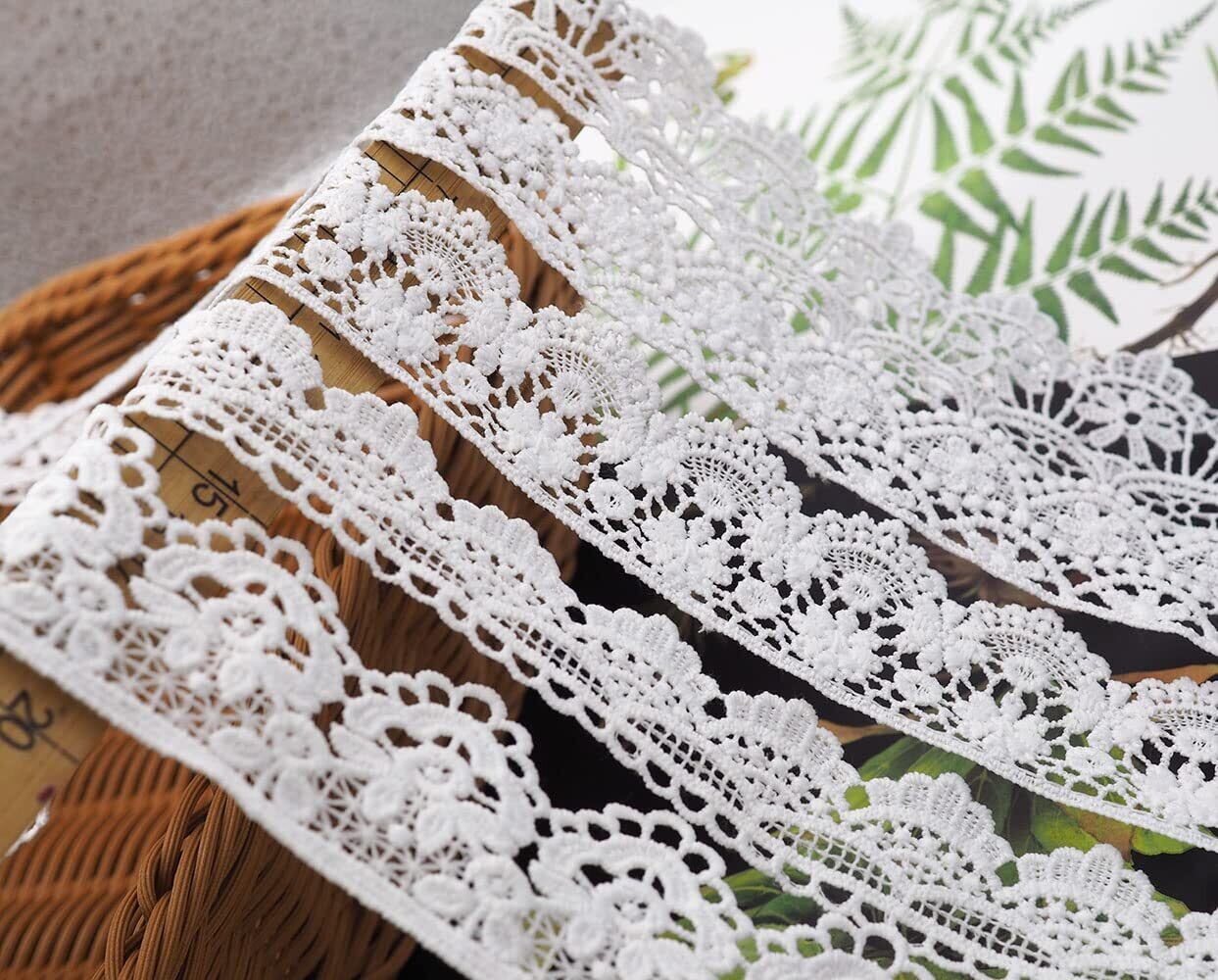 sempiterno 5タイプの流行りのホワイトミニ花柄レース生地 ミルクシルク髪飾り刺繍レース シングル長さ約1m ウェディング糸ホームテキスタイル布地刺繍バーコードDIY補助材料 誕生日 クリスマス ギフト 装飾材料 縫製素材(5タイプアソート)