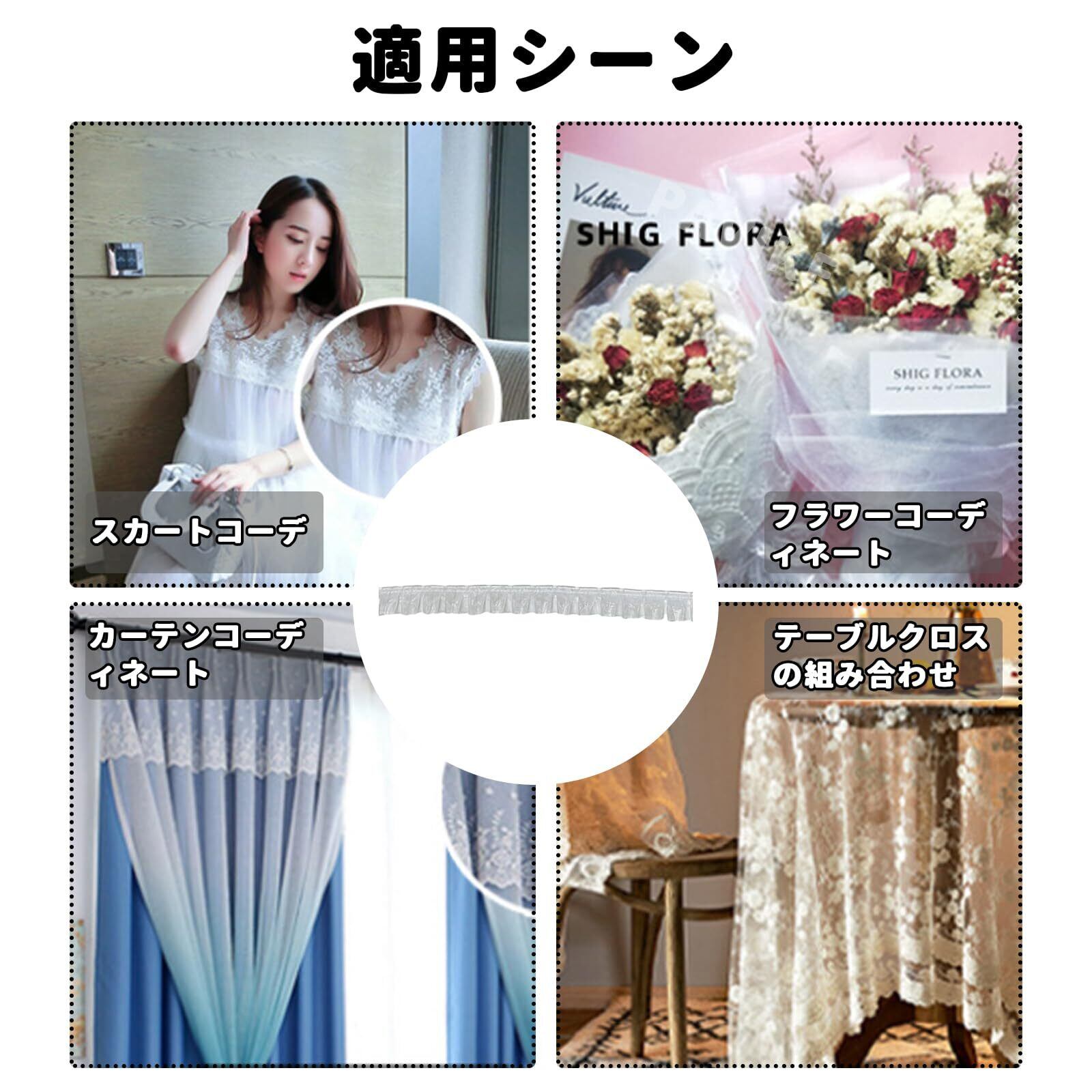 【デザイン】複雑な模様がなく、純白のフリルレースが施されたシンプルなデザインで、使用後も複雑に見えず、より汎用性が高くて、軽量です。