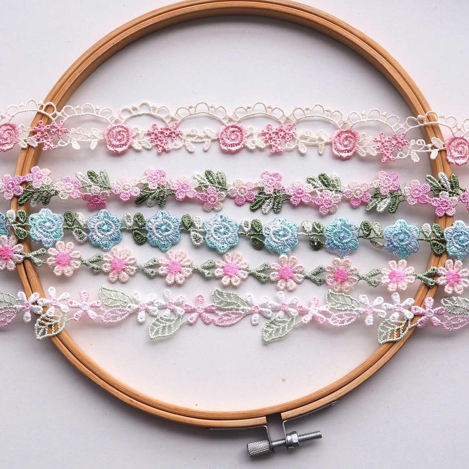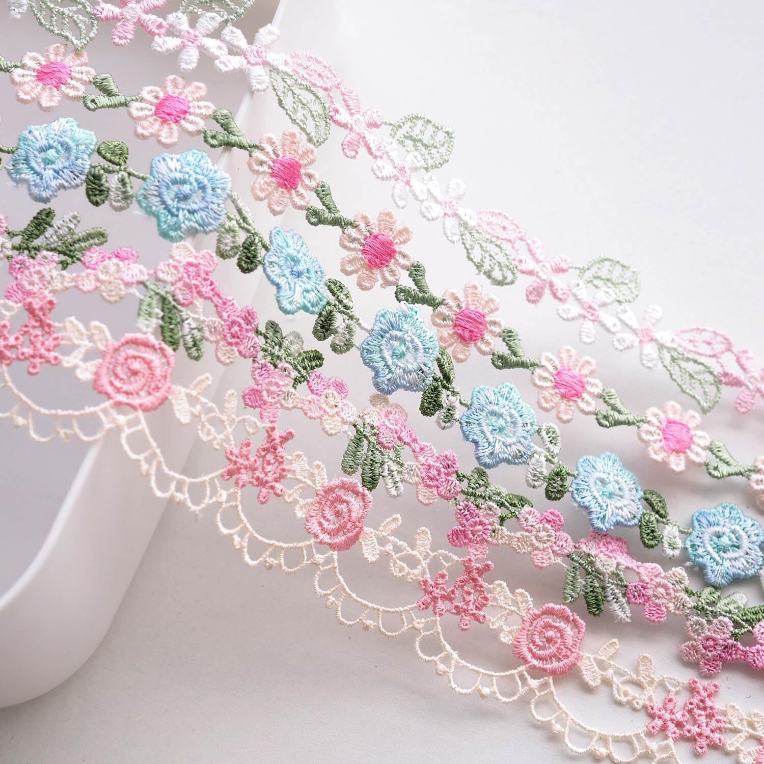 sempiterno 5m(5種類)極狭カラーフラワーレース生地 ミルクシルク髪飾り刺繍レース シングル長さ約1m DIY補助材料 誕生日 クリスマス ギフト 装飾材料 縫製素材 (幅25mm&20mm&15mm)