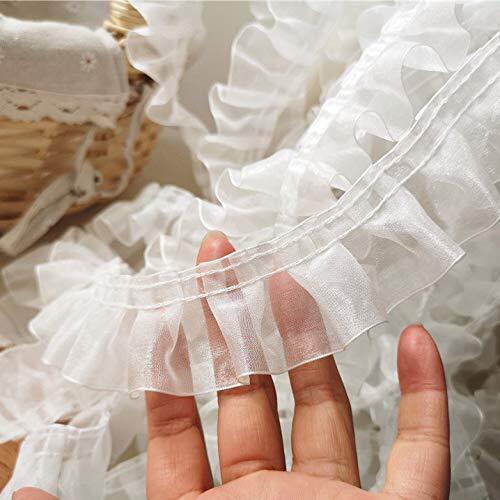 幅3.9cm×長さ5ヤードプレミアムシフォンフリルフリルレース (白い)