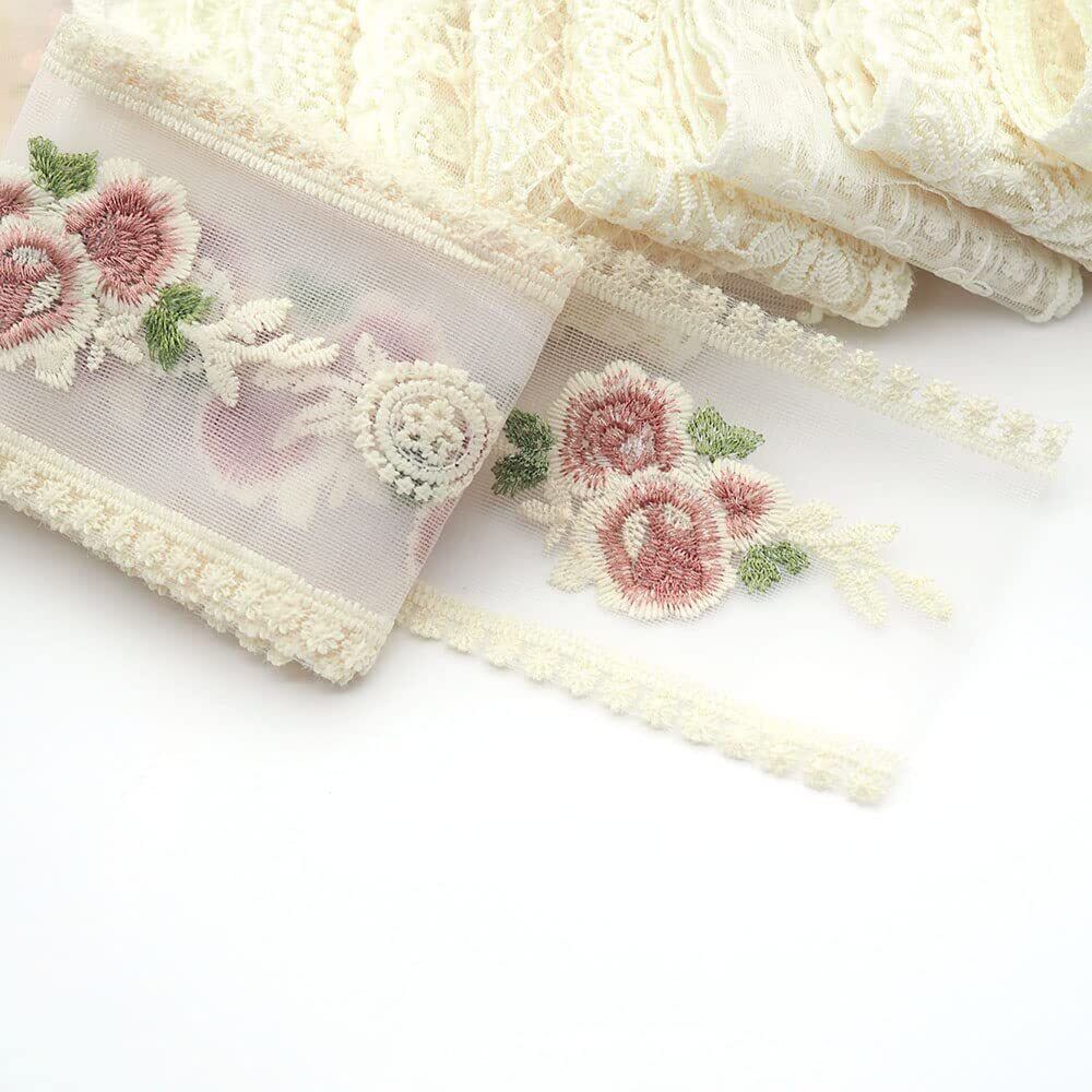 10種類の新作トレンドのレース、とても可愛くてきれいです。ドール用の洋服には最適。お花とリボンの繊細な刺繍がとても素敵です。