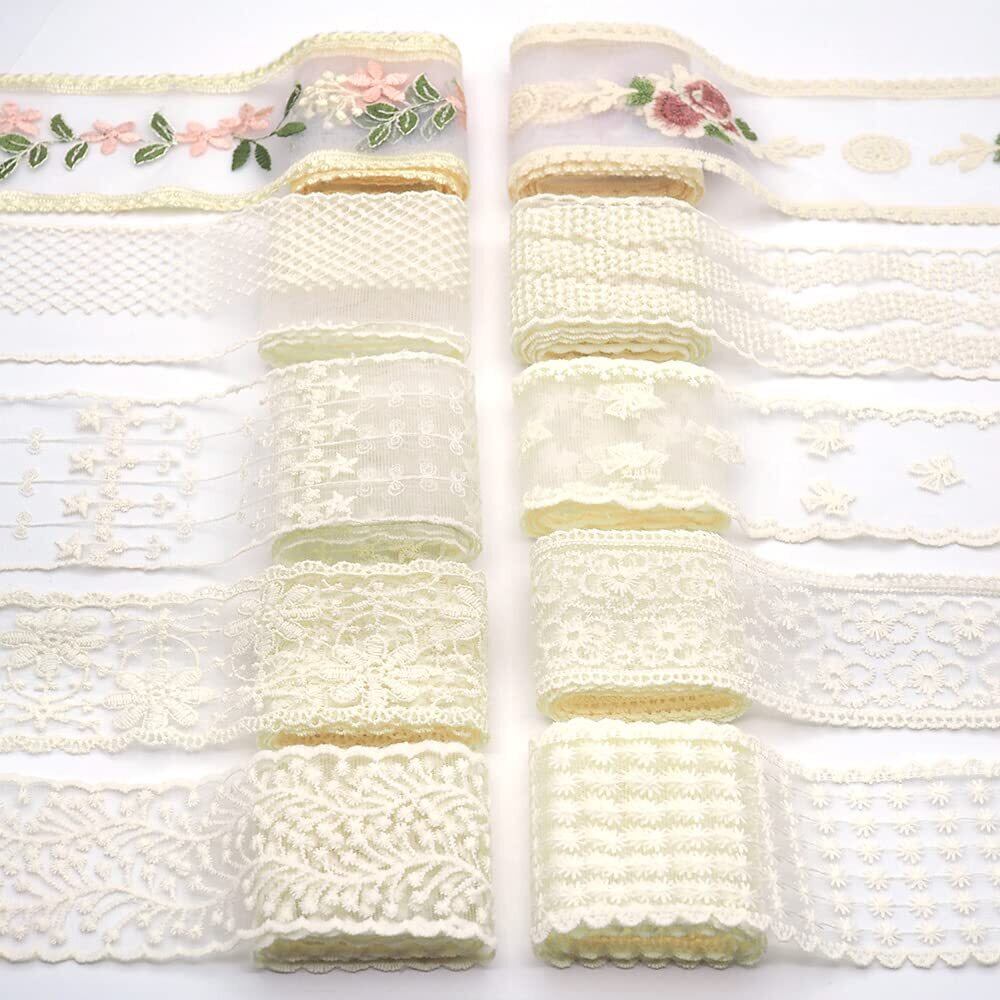 sempiterno 10タイプの流行りの花柄レース生地 ミルクシルク髪飾り刺繍レース シングル長さ約1m ウェディング糸ホームテキスタイル布地刺繍バーコードDIY補助材料(10タイプアソート)