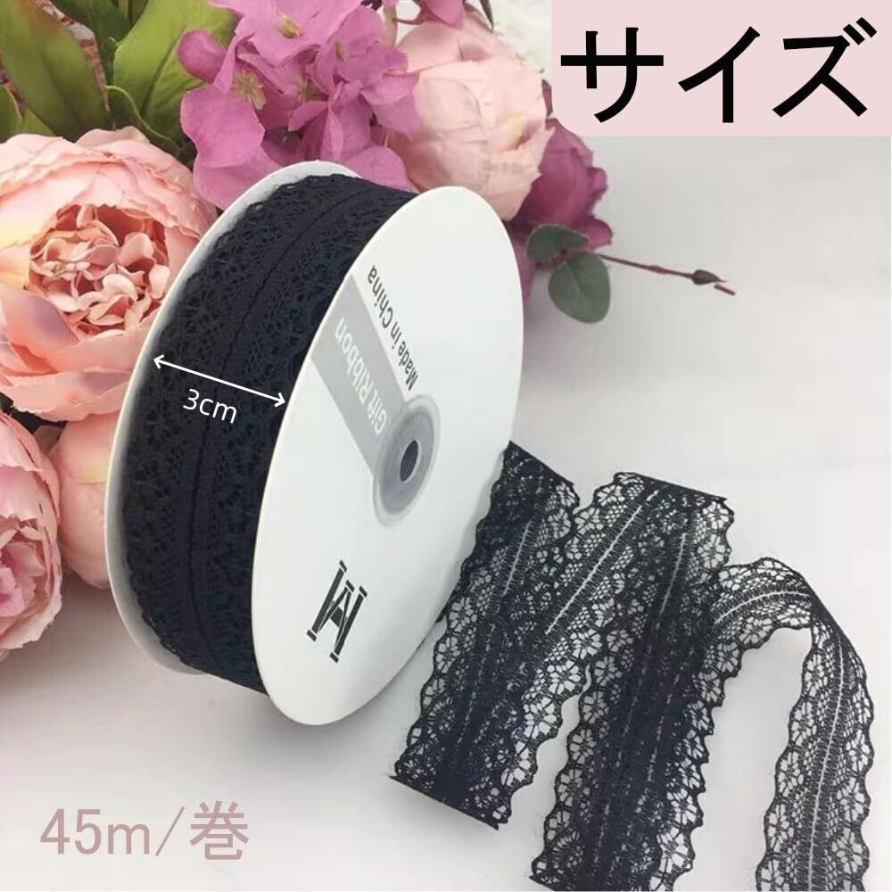 【高級感のあるデザイン】このレースリボンは、白、黒の2種類の色から選ぶことができます、様々な雰囲気やテーマに合わせて使い分けることができます。白のレースリボンは、ヴィンテージな風格を演出し、ウエディングやパーティー、DIYクラフトにおいて、古典的でロマンチックな雰囲気を作り出します、それぞれの個性を活かして、お好みのアイテムにマッチさせることができます。