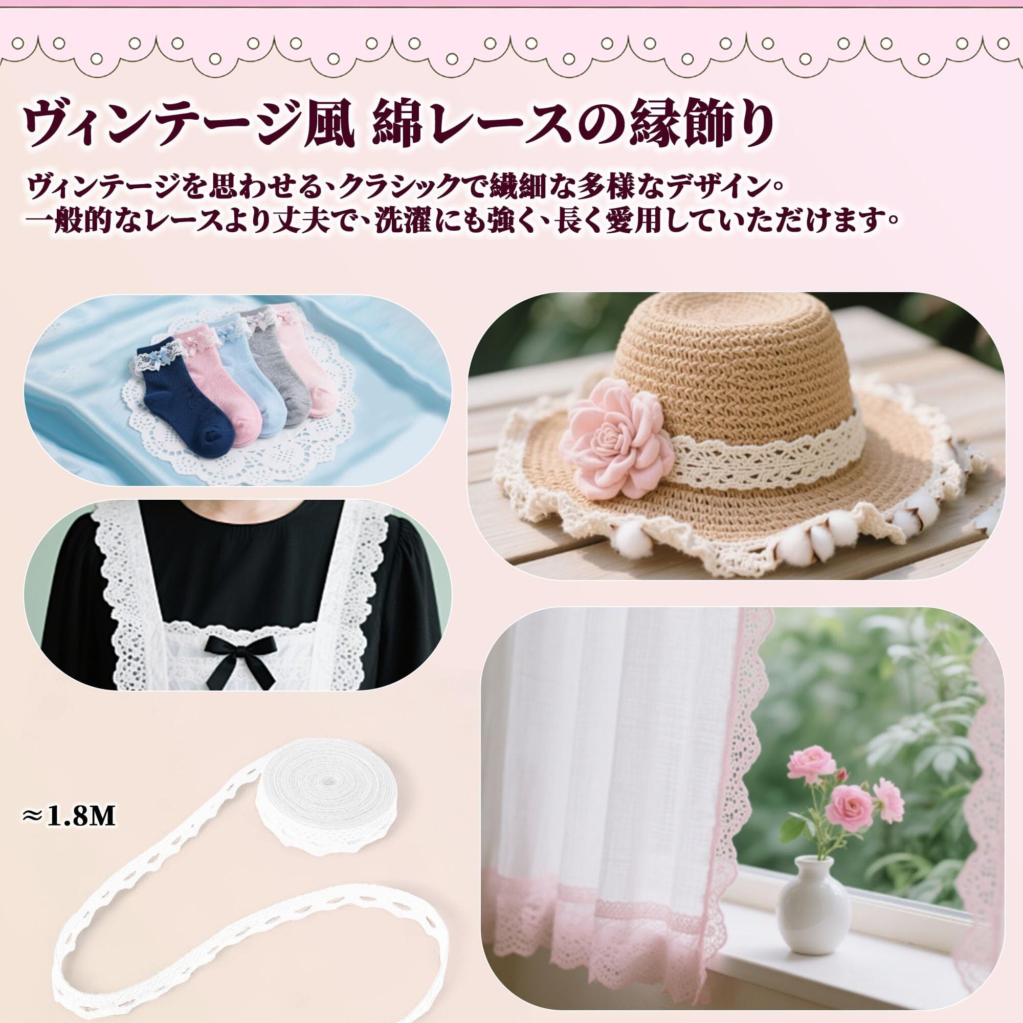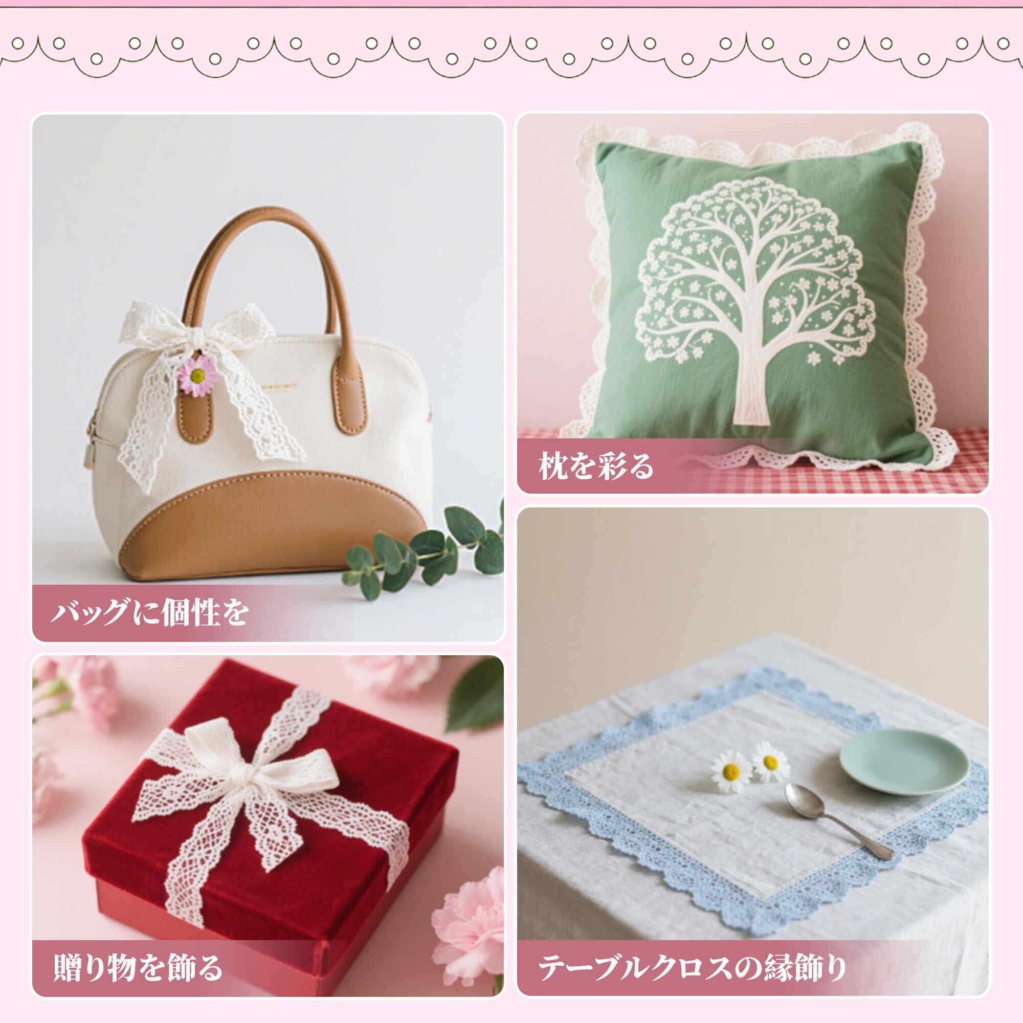 カスタマイズが簡単: 綿レースエッジは簡単にカスタマイズ可能で、異なる形や長さにカットして、個人用のDIYクラフトやギフト包装に適しています。
