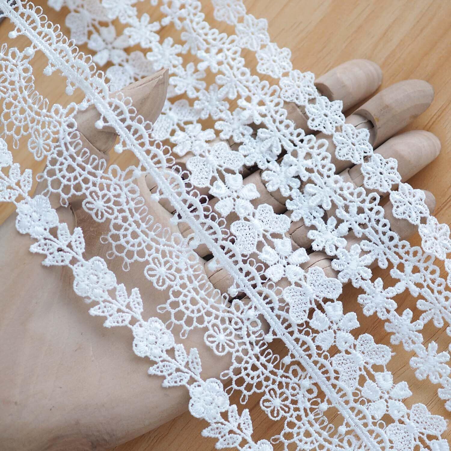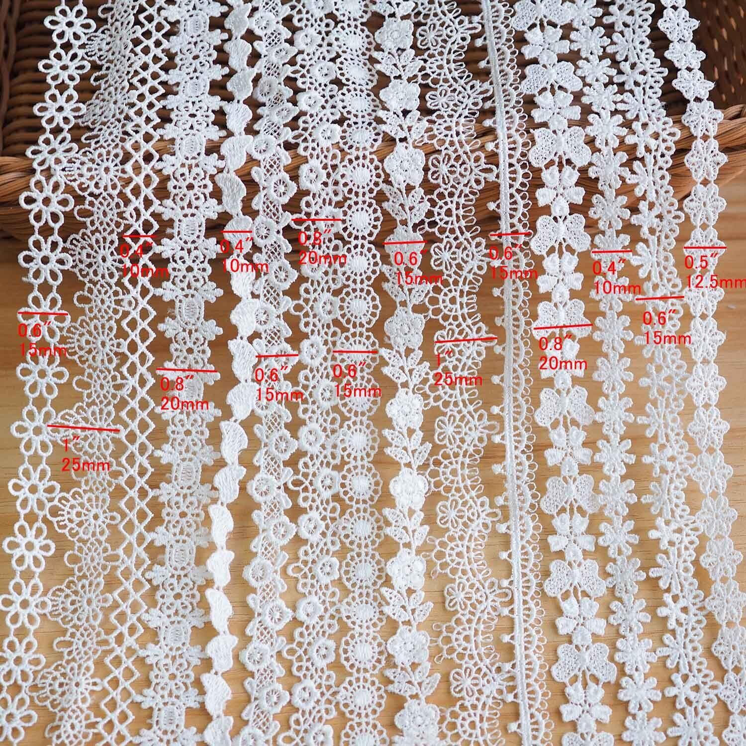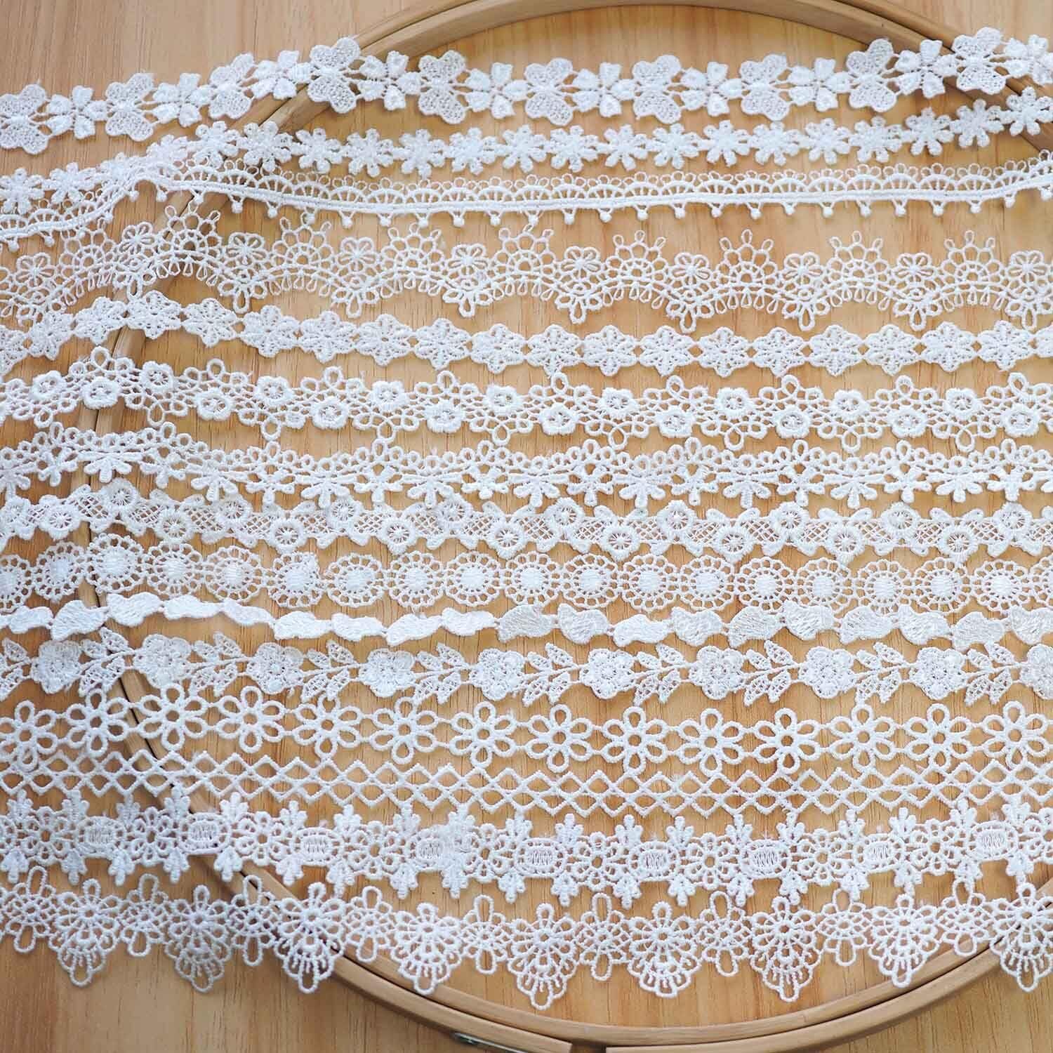 【在庫セール】sempiterno 15m(15タイプ) ミニ極狭の花柄蝶ハートレース生地 ミルクシルク髪飾り刺繍レース DIY補助材料 誕生日 クリスマス ギフト 装飾材料 縫製素材 (ホワイト)