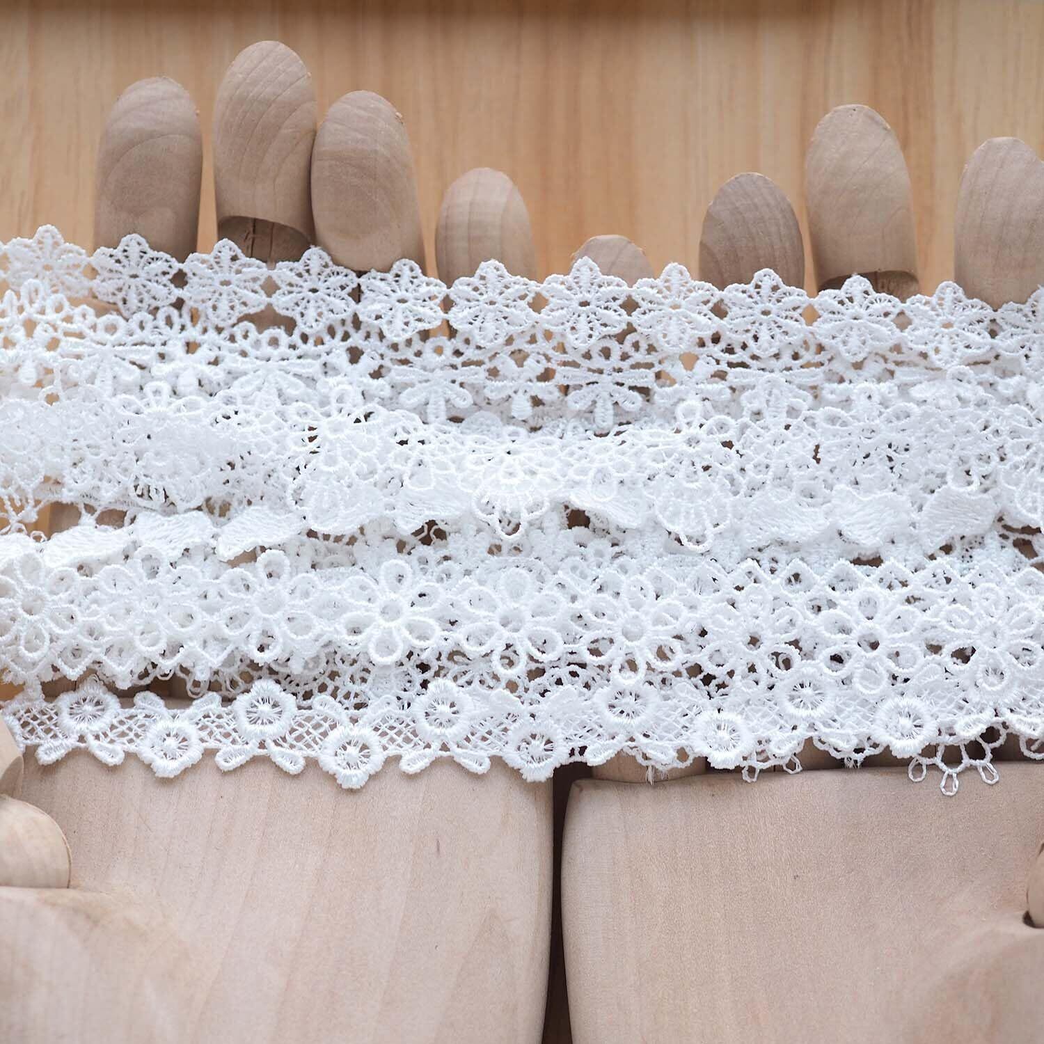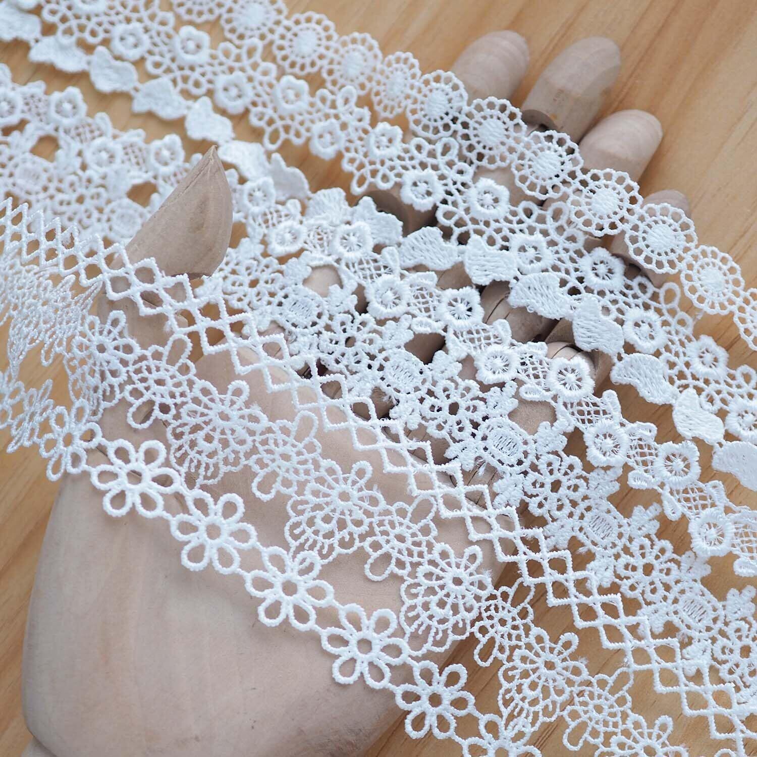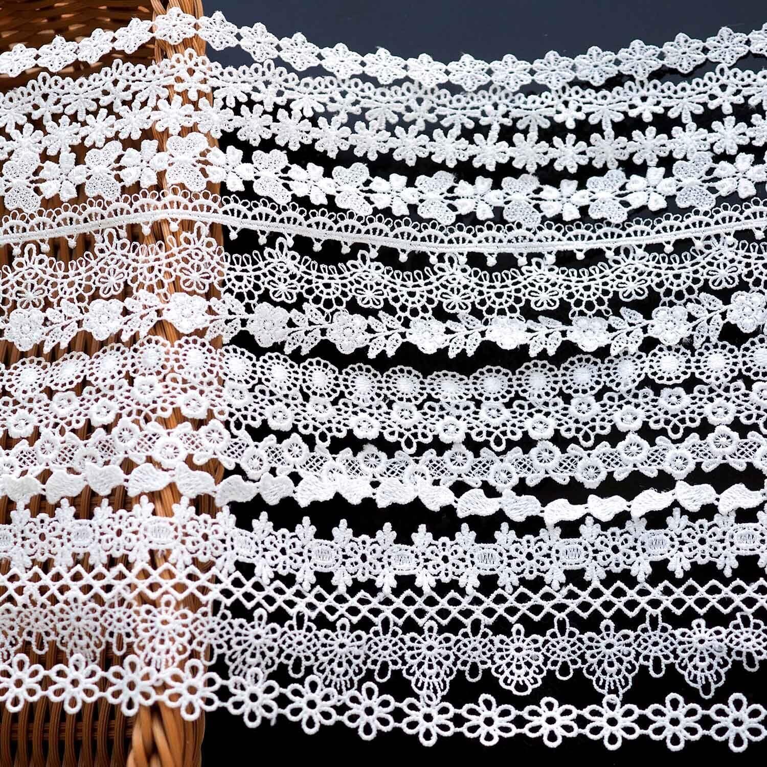 【在庫セール】sempiterno 15m(15タイプ) ミニ極狭の花柄蝶ハートレース生地 ミルクシルク髪飾り刺繍レース DIY補助材料 誕生日 クリスマス ギフト 装飾材料 縫製素材 (ホワイト)