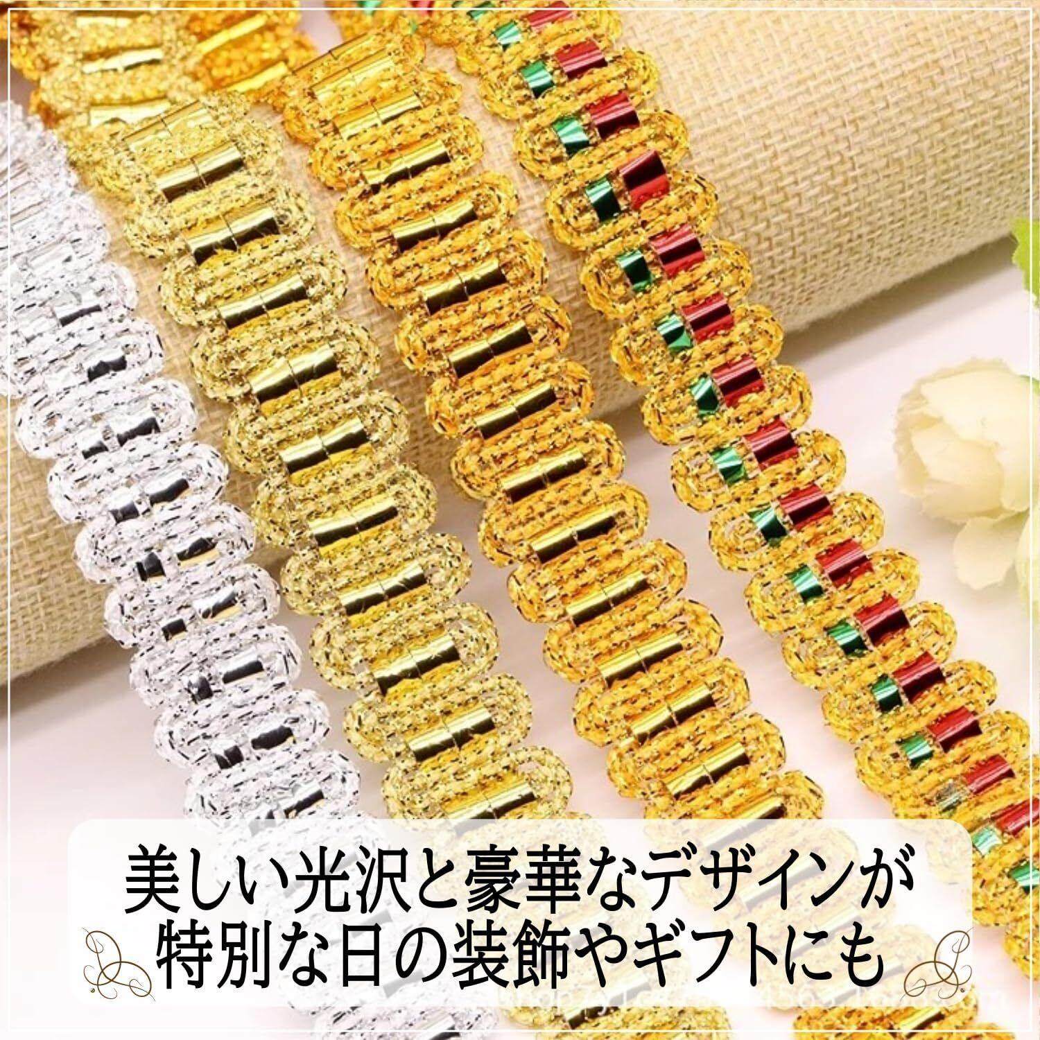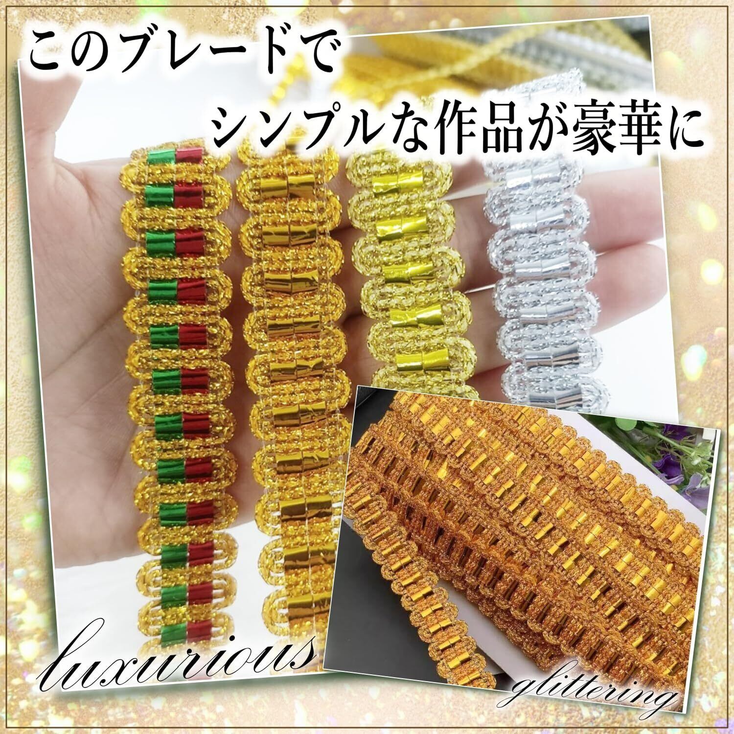 【2022最新】手芸用 ブレード リボン 金 銀 幅2cm キラキラ ラメ ギフト ラッピング 装飾 DIY (ゴールド1)