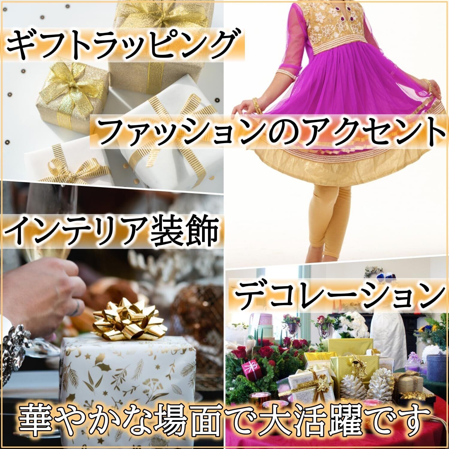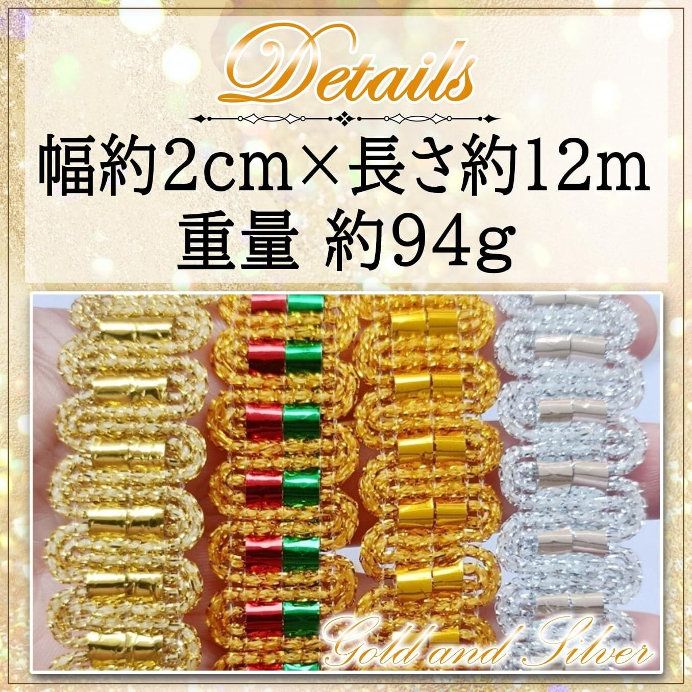 【デザイン】金と銀の装飾が美しく輝き、メタリックカラーのテープが加わることで、視覚的に引き立つデザインとなっています。