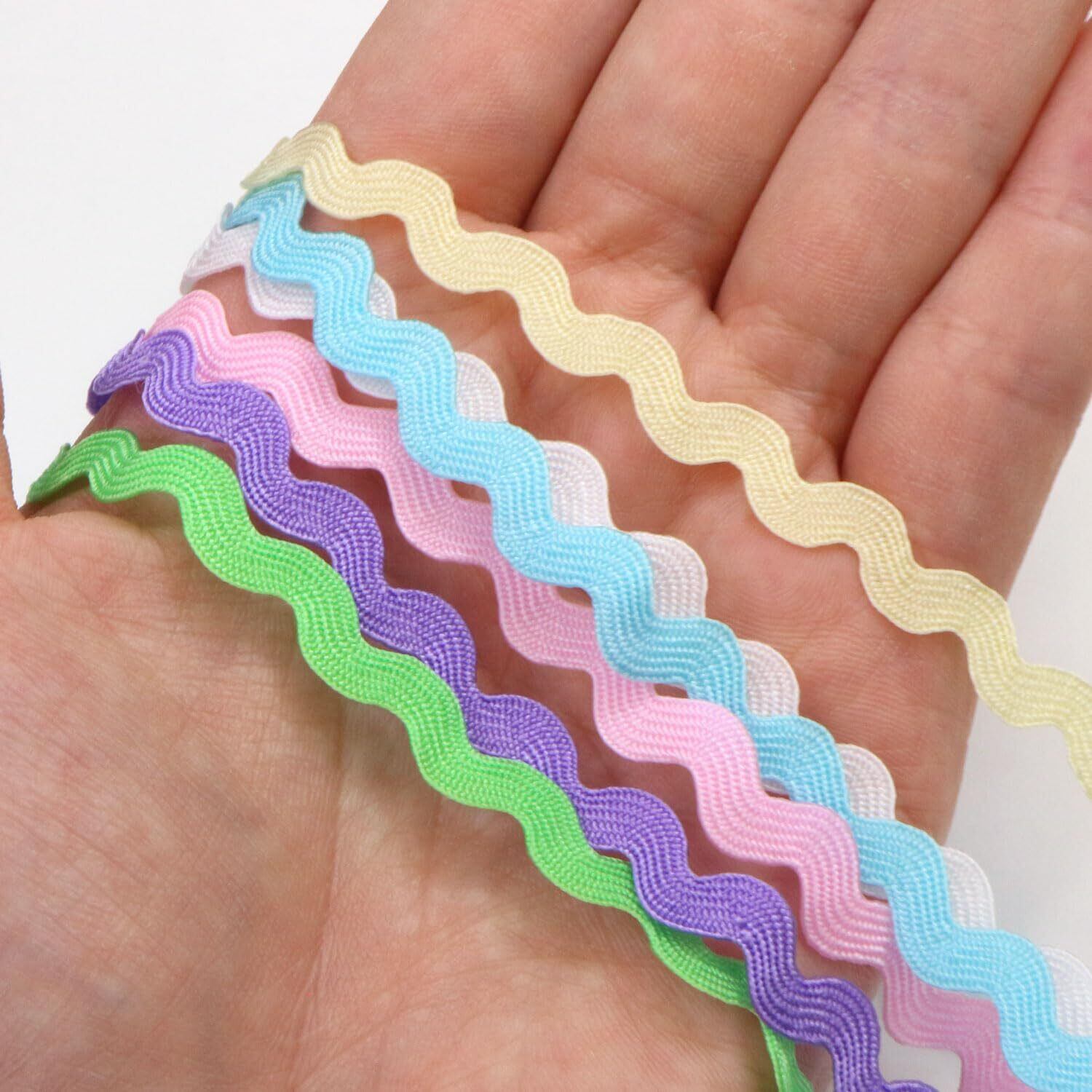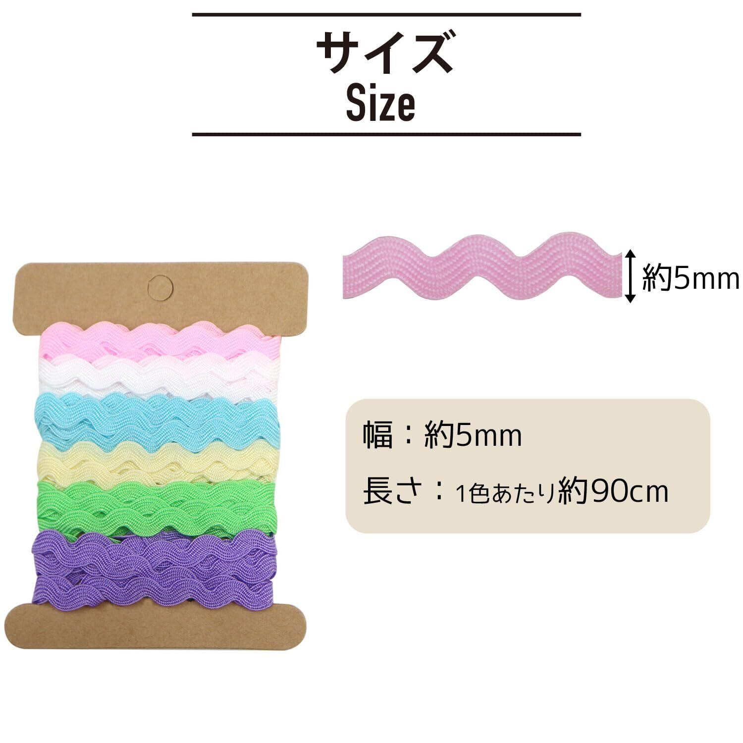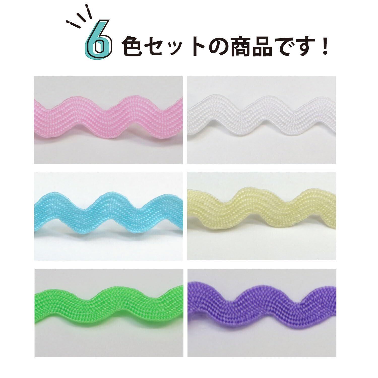 【特価セール】手芸用 ブレード 波型 6色セット 幅約5mmx約90cm ペールトーン ピンク ライトブルー カラフル ひも 紐 平たい リボン きらきらぷんぷん丸 RBN-008