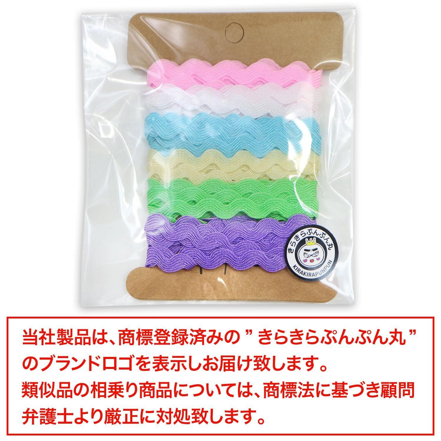 手芸用 ブレード 波型 6色セット 幅約5mmx約90cm ペールトーン ピンク ライトブルー カラフル ひも 紐 平たい リボン きらきらぷんぷん丸 RBN-008