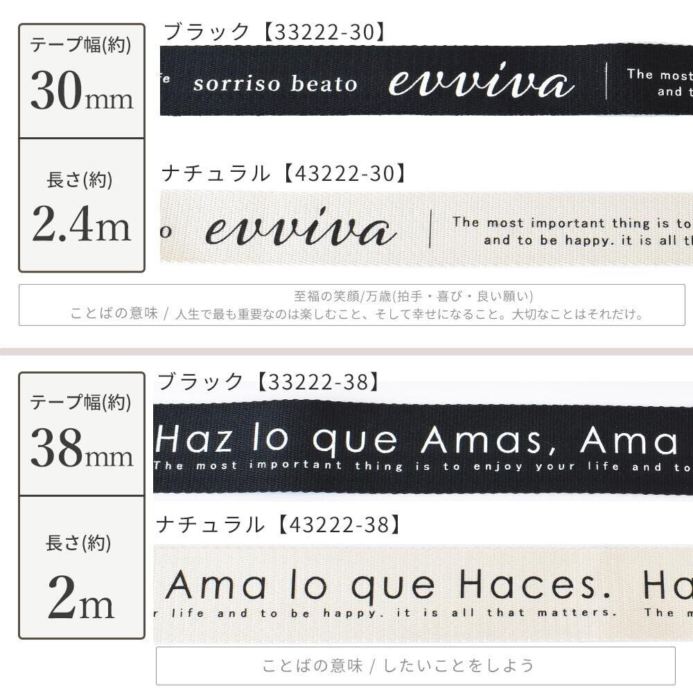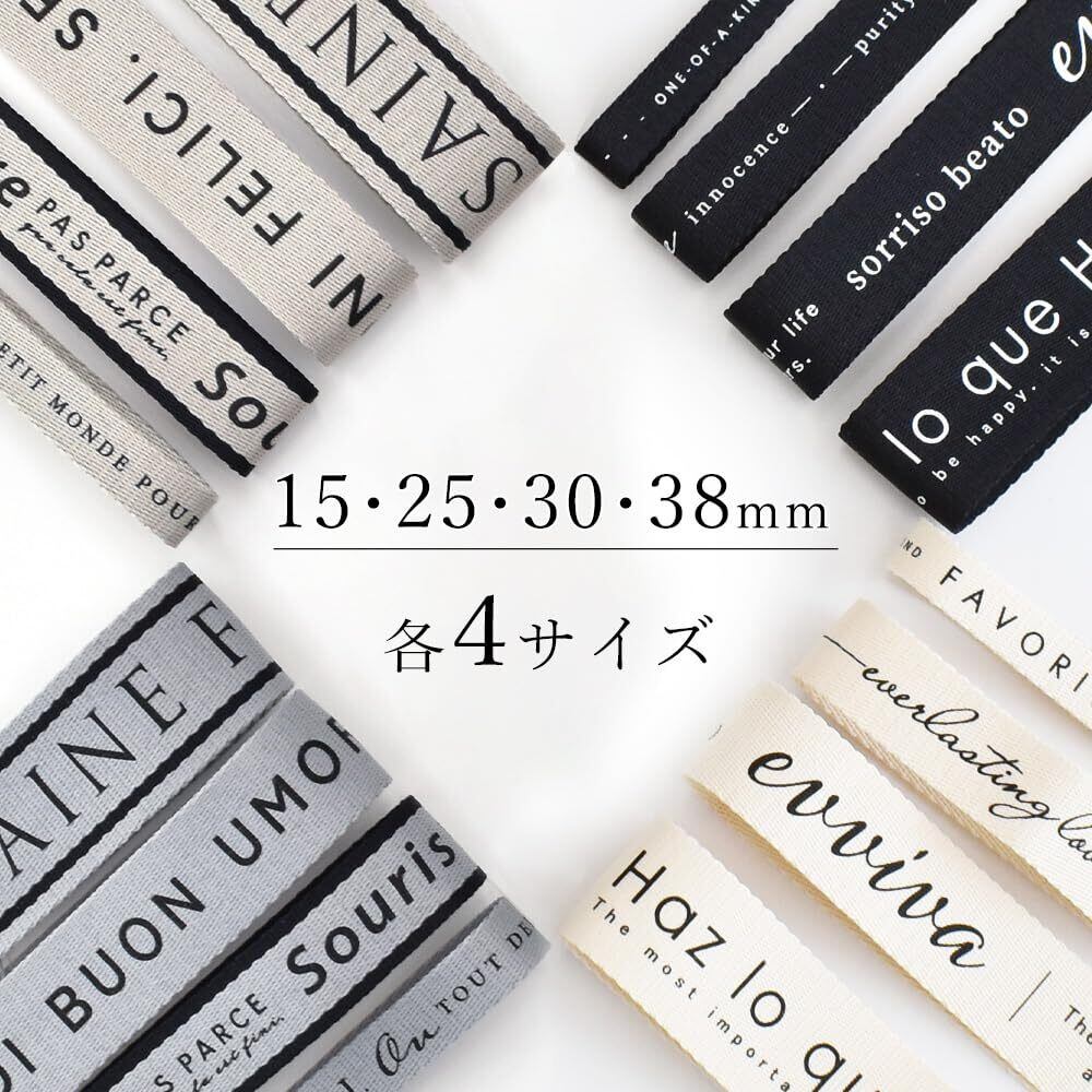 MYmama 手芸用パーツ 持ち手テープ デザインロゴ入 4サイズ 4カラー 装飾用 裁縫材料 手芸用品 (ブラック, 30mm幅×2.4m)