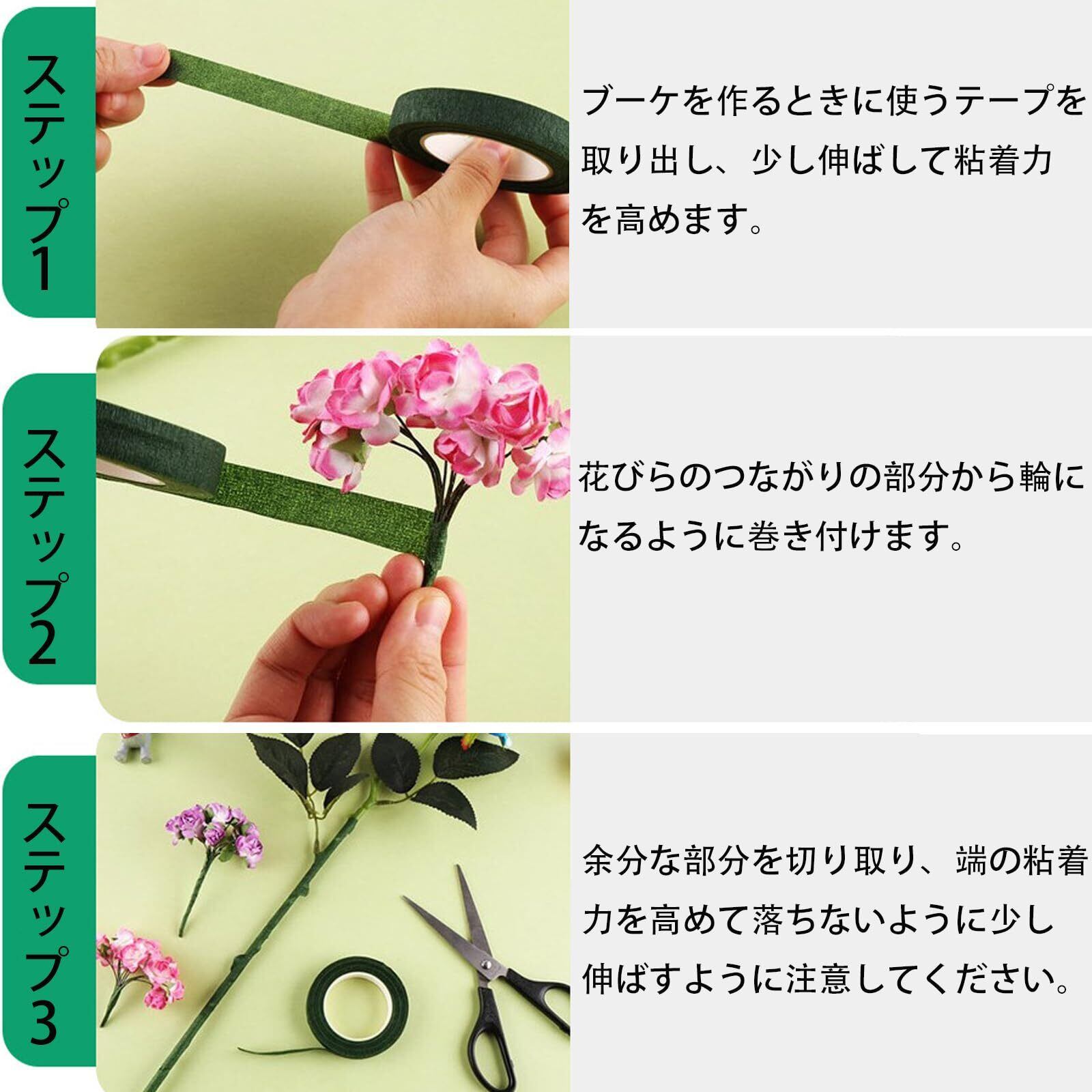 用途: フローラテープはクレープ紙で柔らかい質感ですが、使用時よく伸び、包みやすくて、作業は引き裂きや切断もしやすいの手芸モール手芸用品です!校のマニュアルクラス、親子アクティビティ、コスプレ、誕生日会、仮面舞踏会、休日の装飾、DIY、手芸飾りなどのDIY場合に大活躍です!