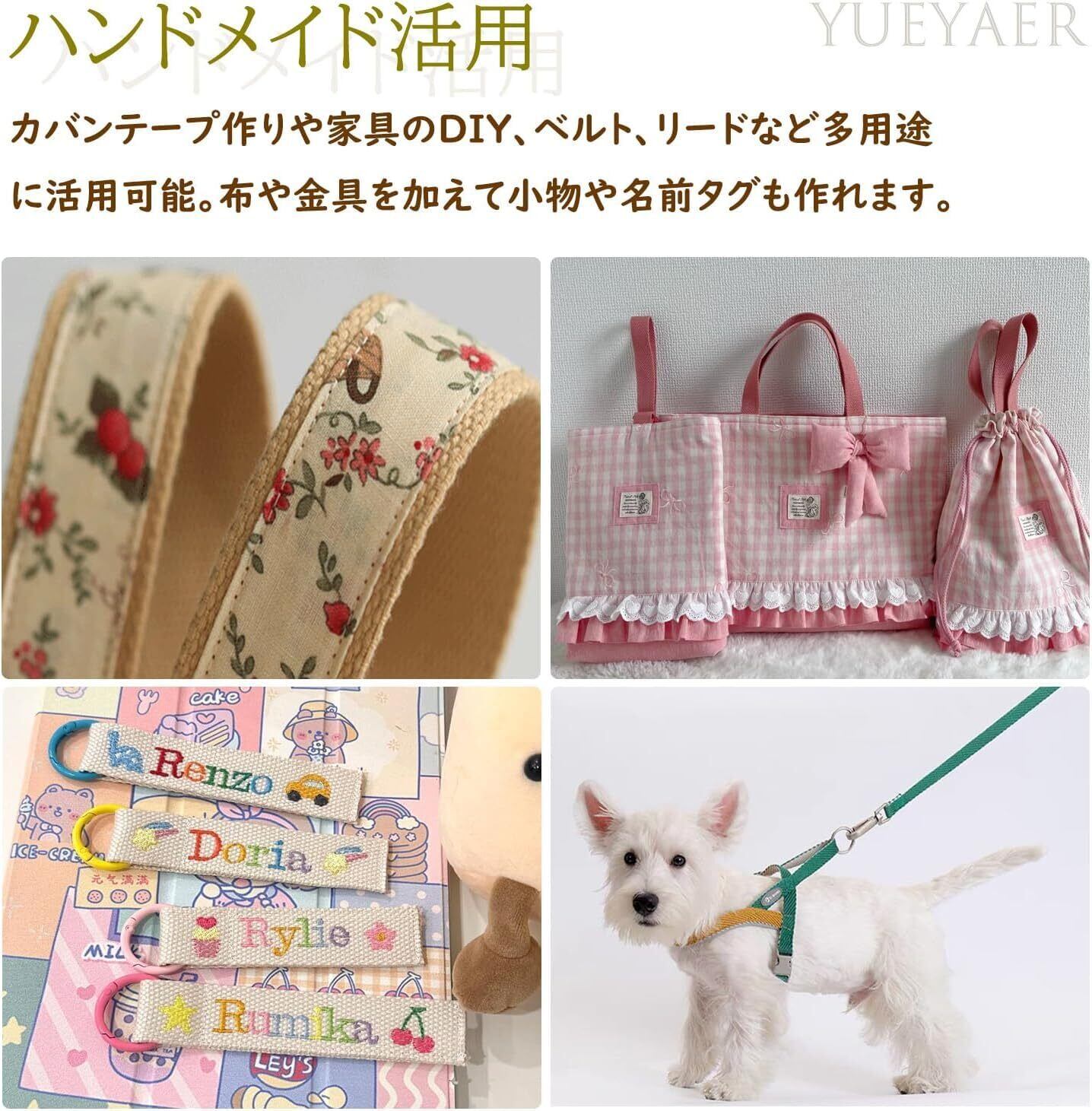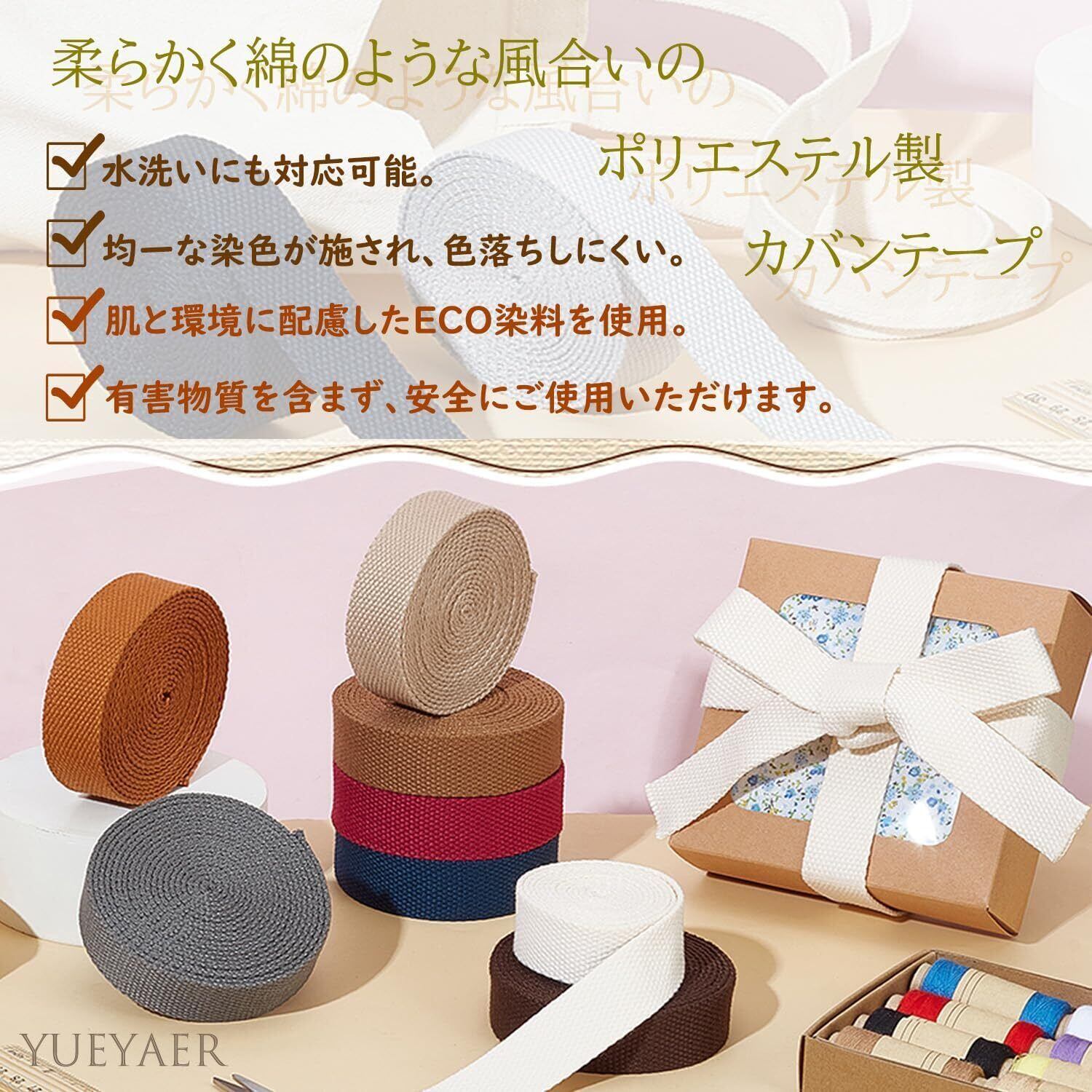 【ご注意】ポリエステル綿テープの製造過程で以下の欠陥が生じる可能性があります:色の違い、糸の飛び出し、表面のわずかな毛羽立ちや摩耗、寸法のわずかなズレ。これらの欠陥は製造過程で一般的に見られる問題ですが、通常は機能に影響しません。ご理解の程、よろしくお願い申し上げます。