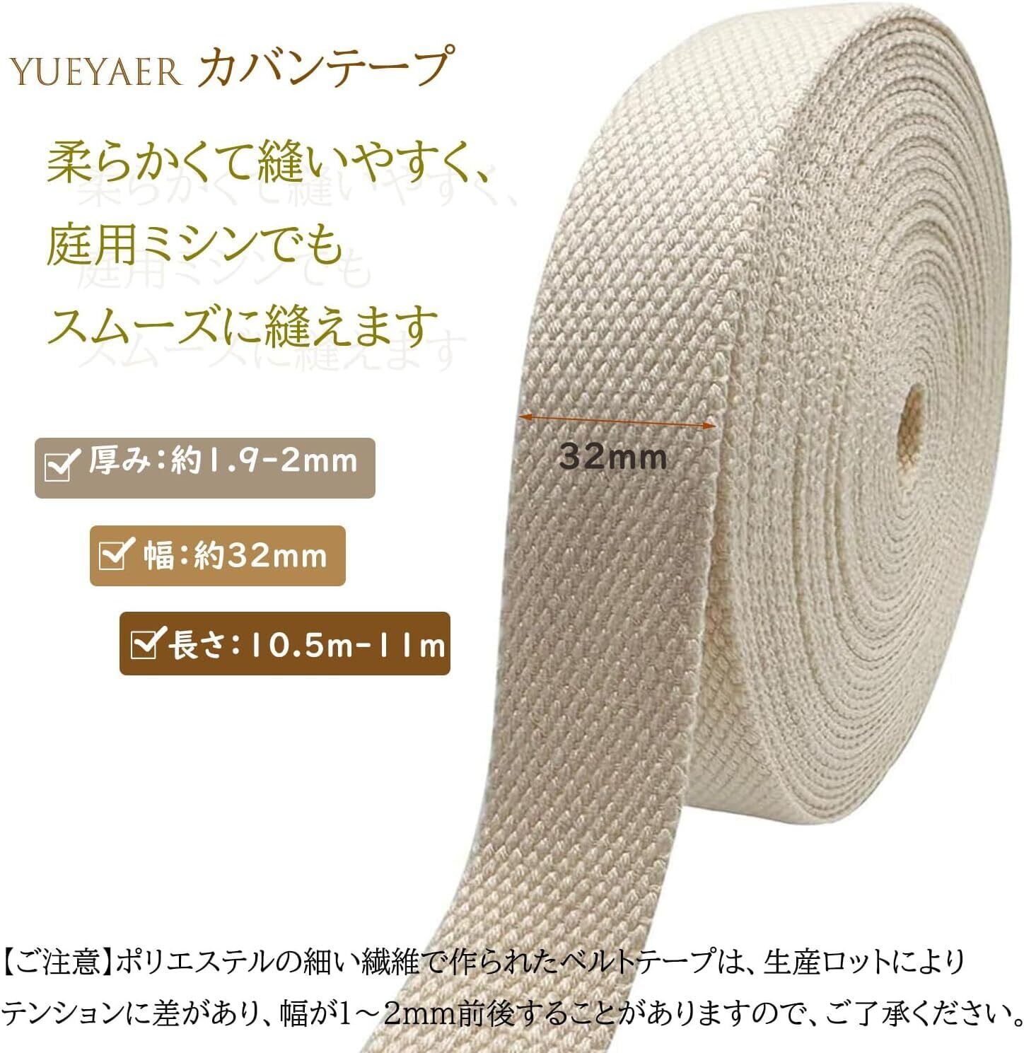 YUEYAER カバンテープ カラー テープ 32mm幅×10.5m~11m巻 厚み約2mm 手芸 アクセサリーパーツ 綿ぽい ポリエステル (アースグリーン)