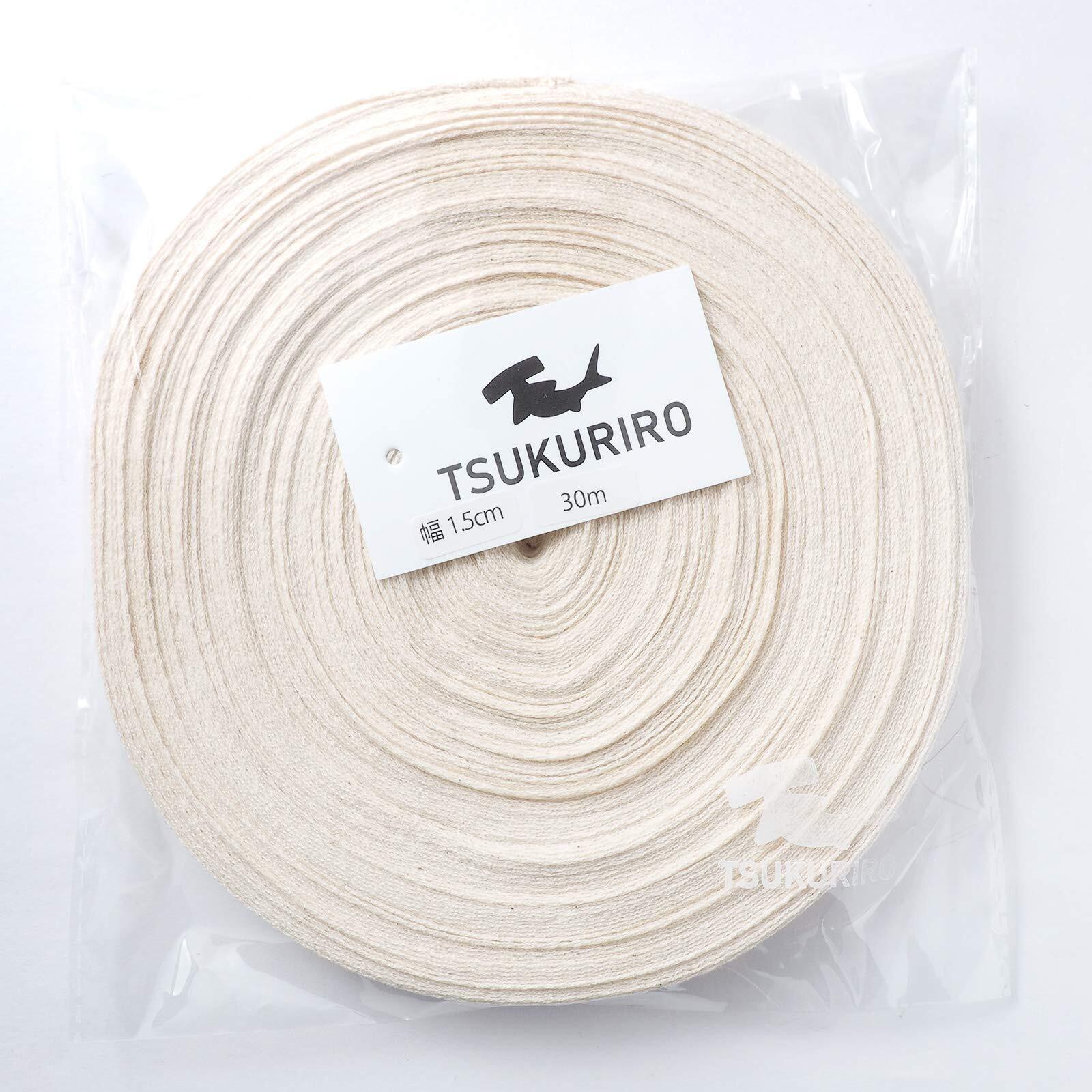 TSUKURIRO 綾テープ 生成り 綿 DIY ハンドメイド パーツ 手芸 (幅1.5cm 50m)