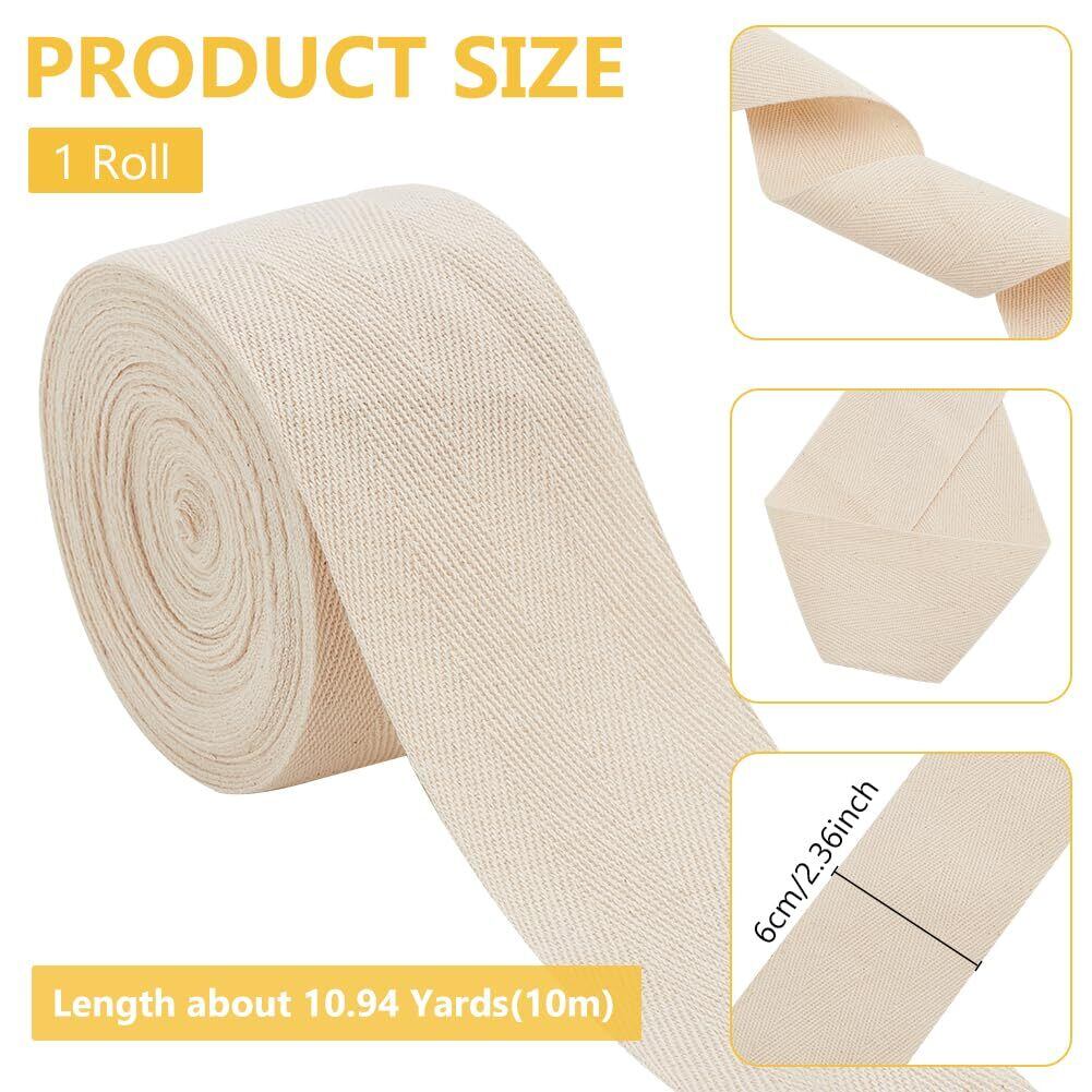 サイズ詳細:長さは10m、幅60mmの綿テープ1ロールです。カラー:生成。