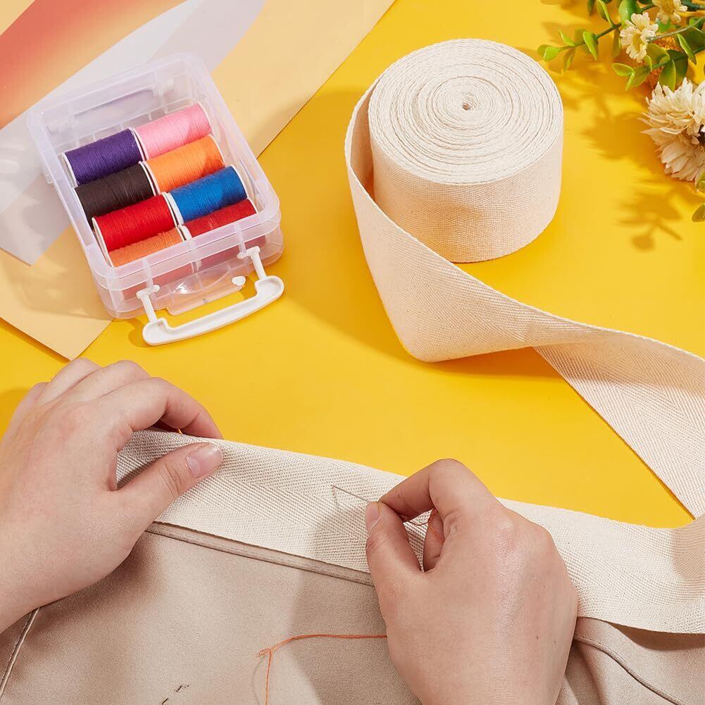 【新着商品】BENECREAT 10m/ロール 綿テープ コットンテープ 幅60mm 綾テープ カバンテープ 持ち手テープ フラットテープ 衣類アクセサリー ツイルテープ 縫製 縁取り パイピング アクセサリーパーツ 生成色