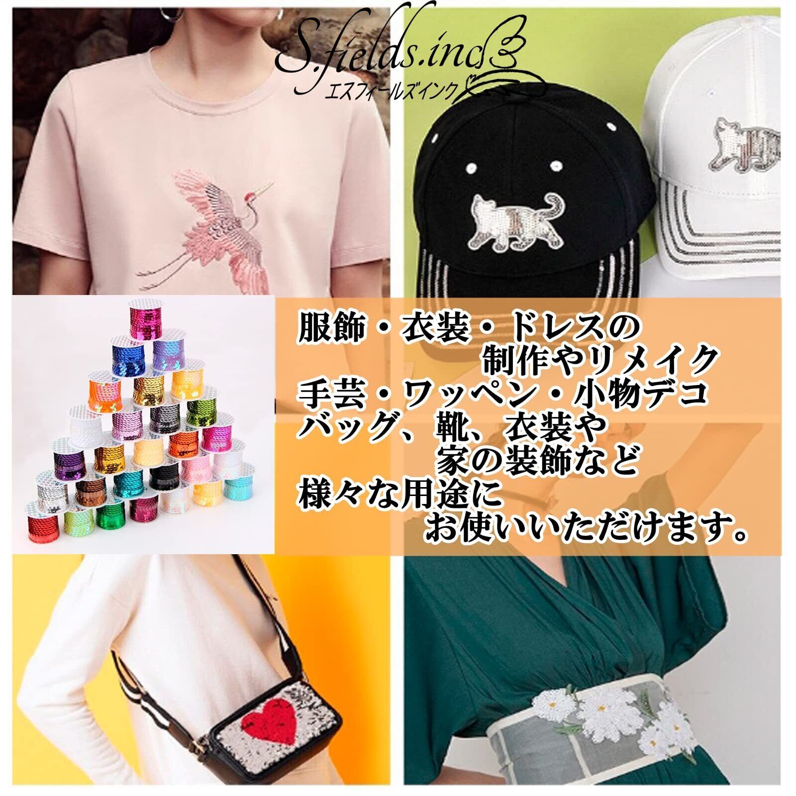 服飾・衣装・ドレスの 制作やリメイク・手芸・ワッペン・小物デコ・バッグ、靴、衣装や家の装飾など様々な用途にお使いいただけます。