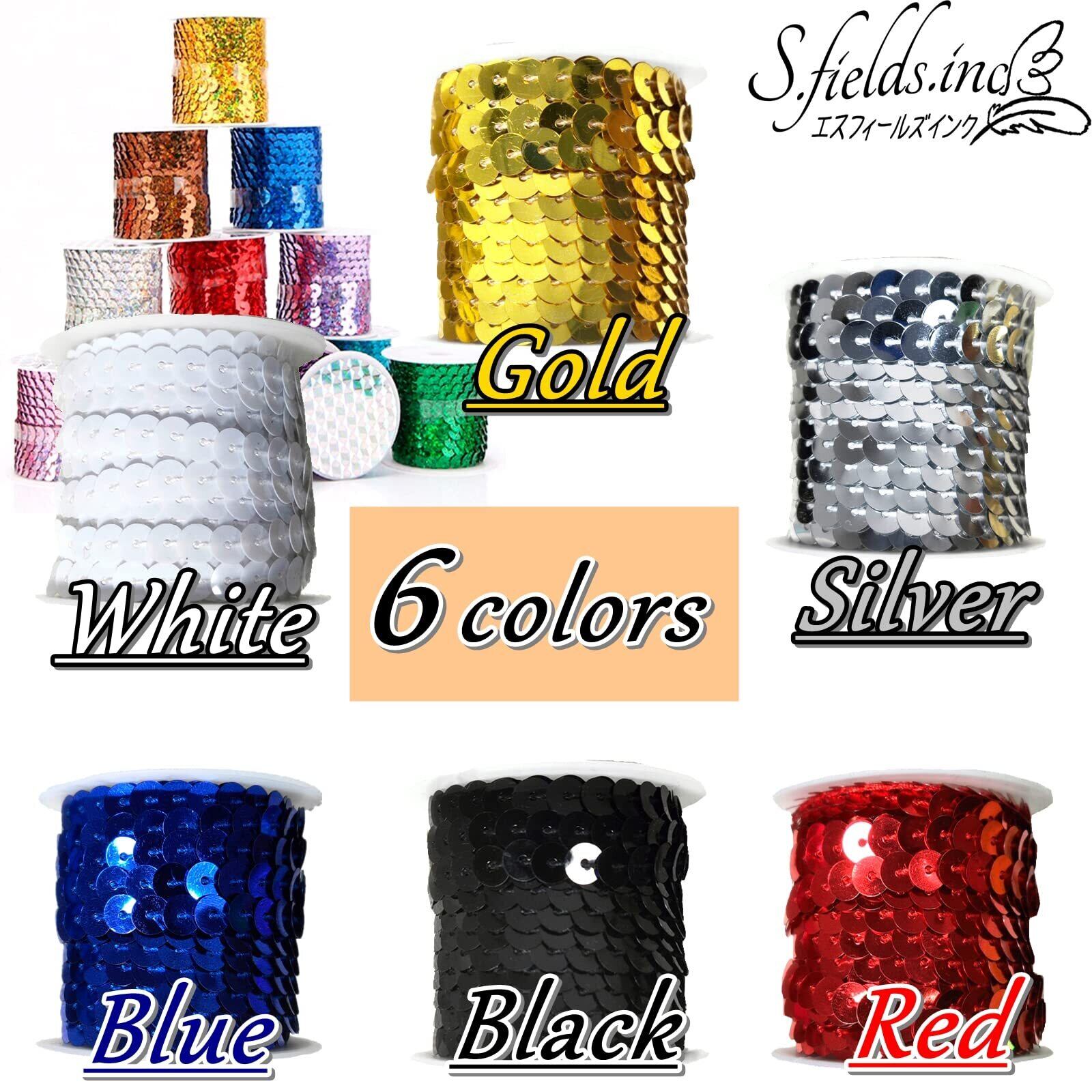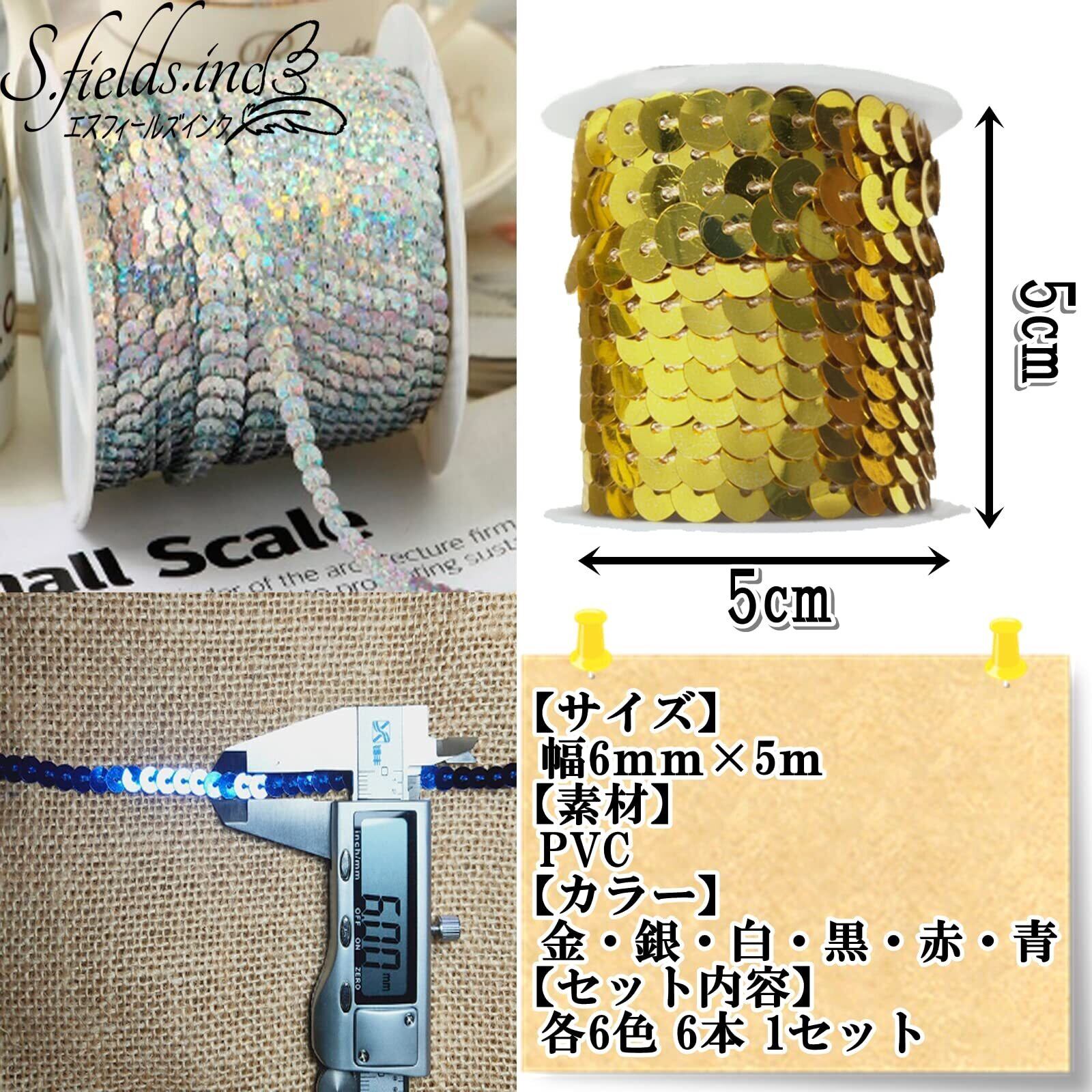 S.fields.inc スパンコールテープ ストリング 5Mロール 6色セット ストリップ ブレード 手芸