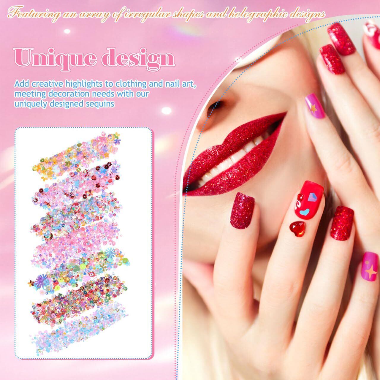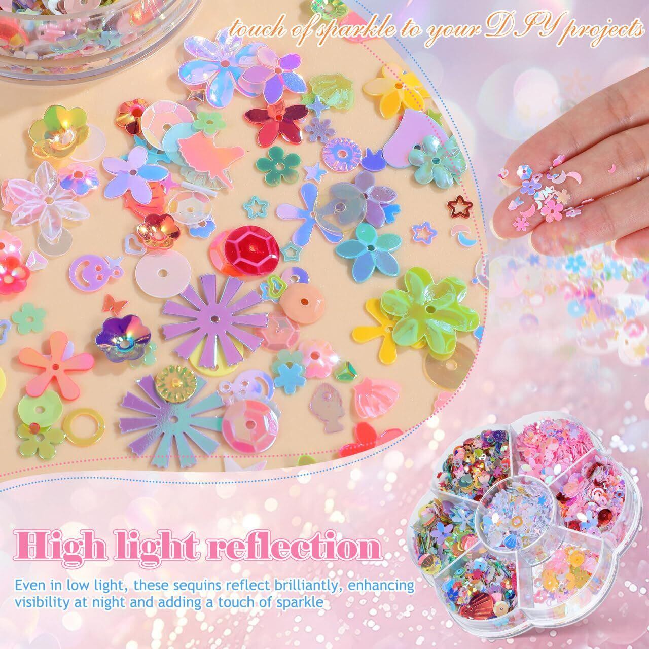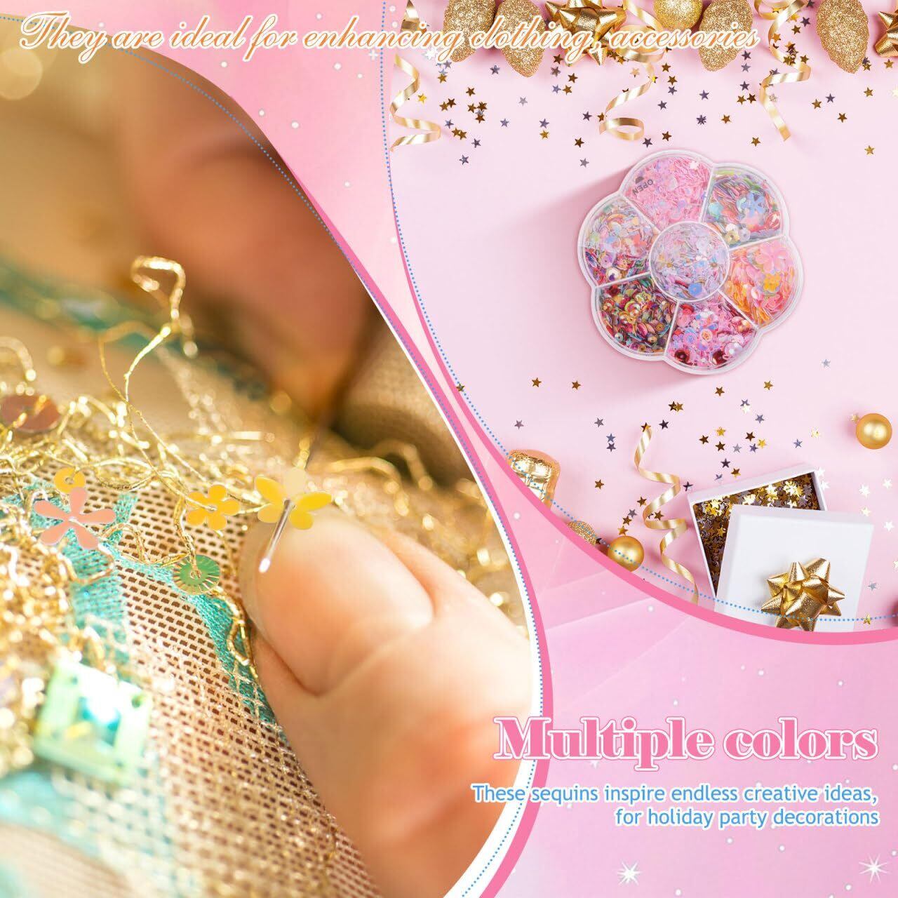 【様々な形、無限の創造性】 不規則な形のスパンコールのデザインを提供することで、従来の単調さを打ち破り、DIY 創作の可能性を広げます。コラージュ、装飾、 アンドマッチなど、ユニークな芸術的効果を簡単に作り出し、無限のインスピレーションを刺激することができます。