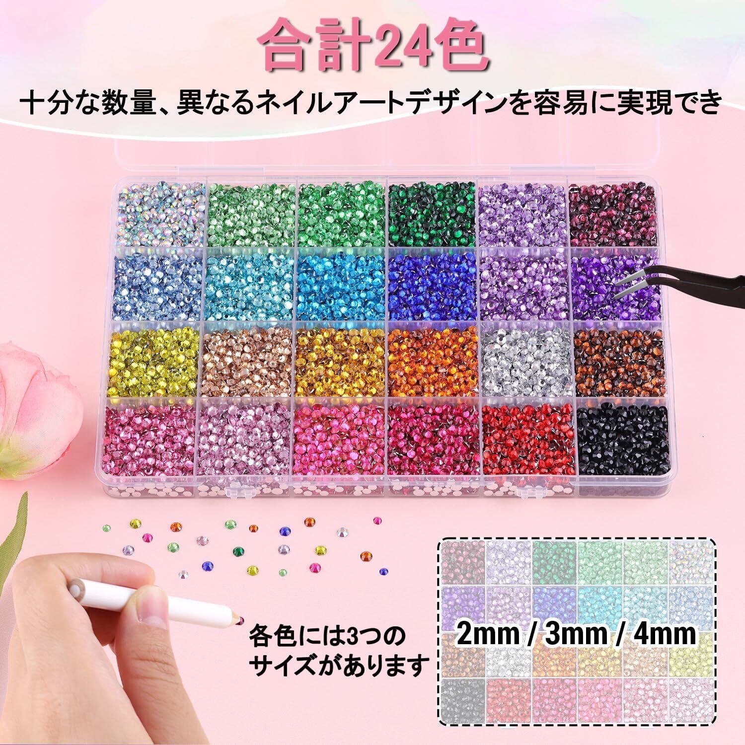【数量限定】ネイルラインストーン 24色 ラインストーン ネイルアート 2/3/4mm キラキラ DIYネイル ジュエリー デコパーツ 手芸パーツ ハンドメイド素材