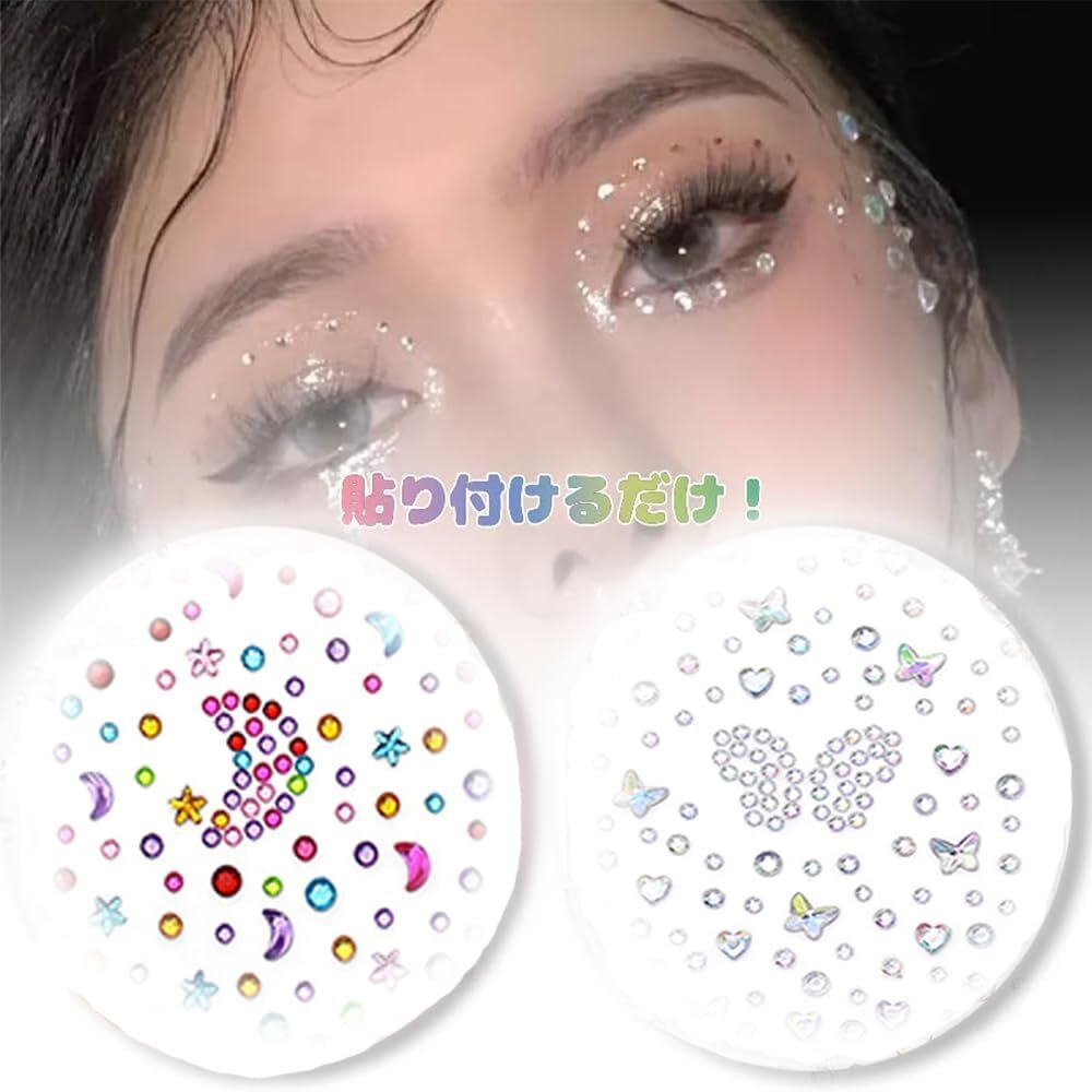 【はがして貼るだけ簡単】このラインストーンは、あらかじめマウントされた自己粘着性です。使いやすく、デザインに合わせて簡単に剥がしたり貼ったりすることができます。顔シール キラキラ、何度も繰り返し使用することができます。