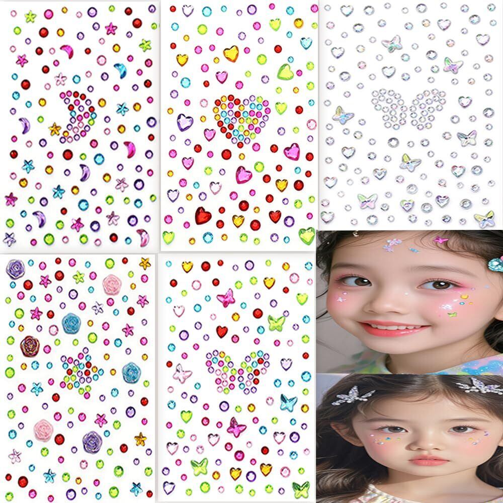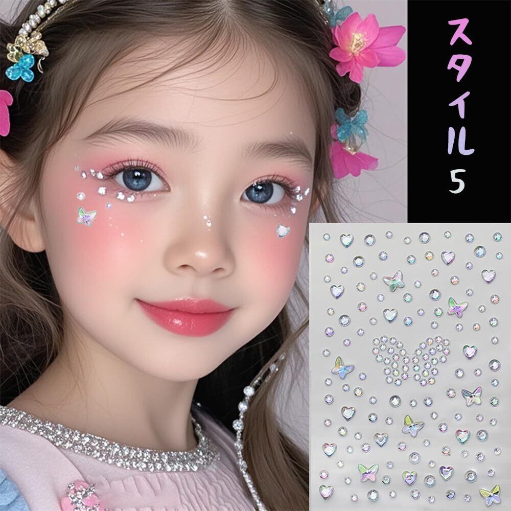 ラインストーン シール 5枚セット フェイスシール 3Dキラキラ 舞台化粧フラッシュドリルアクセサリー 携帯電話装飾 DIY用品 手芸用品 祝日の贈り物 (フラワーストーリーブレンド、舞蝶リフレクティブA、ハートカラーブレンド、ギャラクシーグラデブレンド、舞蝶リフレクティブB)