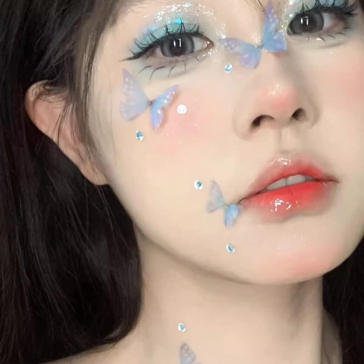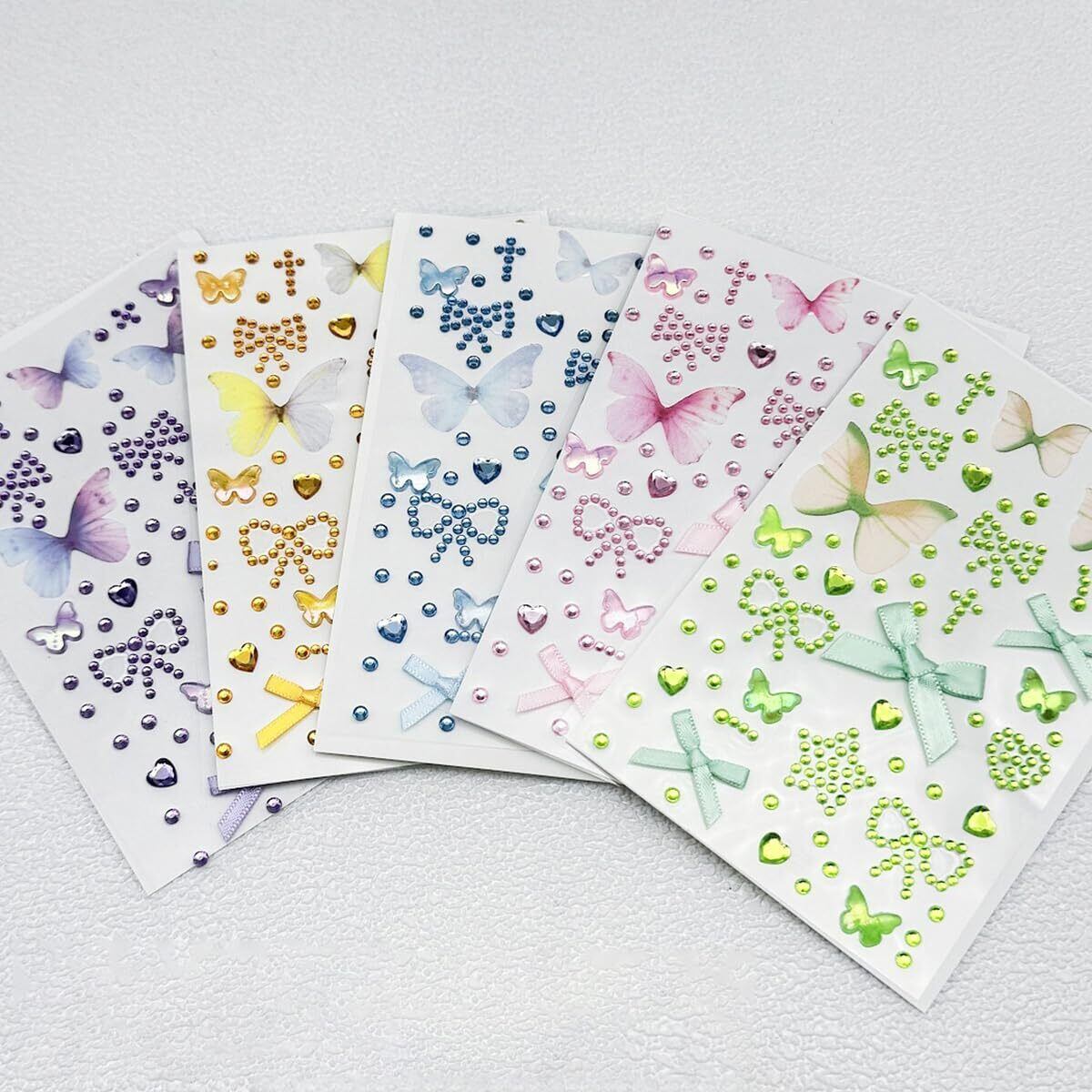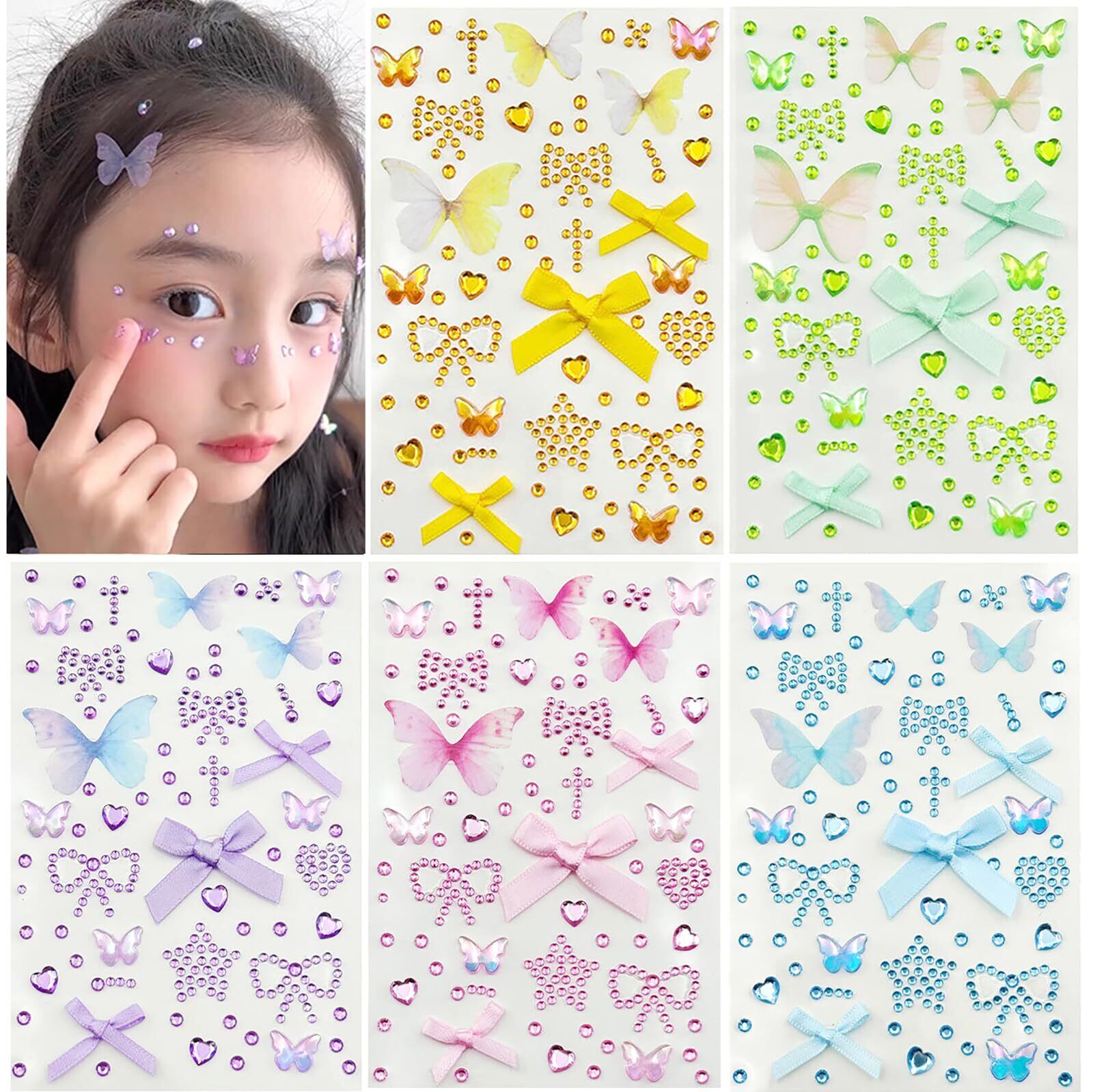 【数量限定】顔 シール 蝶 3D キラキラ フェイスシール 5枚セット 接着剤不要のラインストーン 舞台メイク フラッシュドリル 顔面デコ 携帯電話装飾 DIY ギフト
