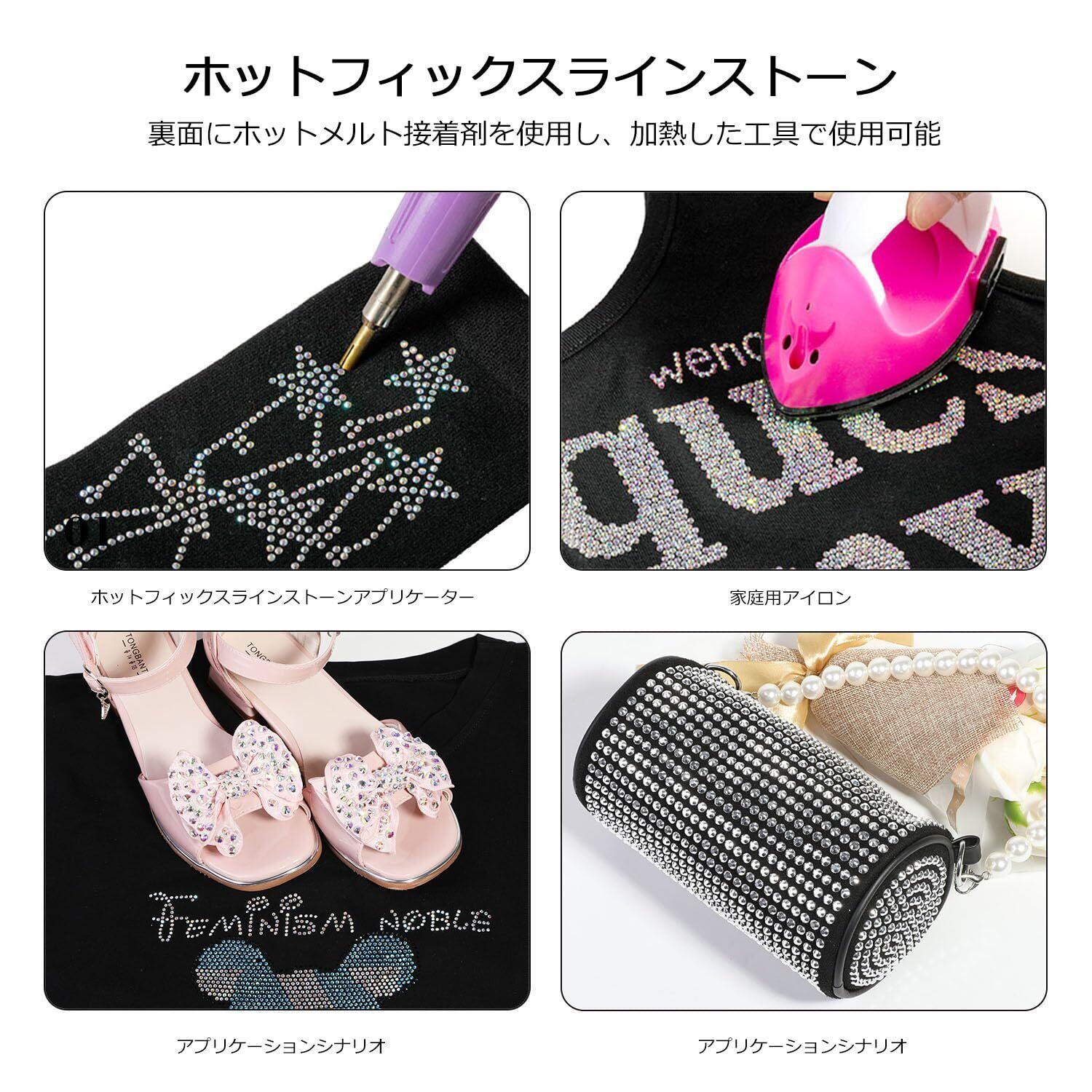 幅広い用途:このホットフィックス クリスタルは、衣類、靴、バッグ、スカーフ、スマホケース、メガネ、ヘアピン、タブレットなどに適用できます。