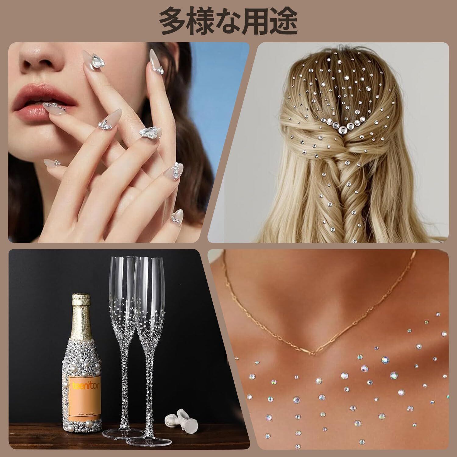 【多用途】デザイン次第で、顔、胸、目の周り、額、腕、背中など様々な場所に使用でき、実用的で多用途な美容小道具となります。ラインストーンは、クラフトやジュエリーなど、お好みに合わせて様々な用途にお使いいただけます。また、洋服、携帯電話、ネイルアクセサリー、バッグ、グリーティングカード作り、DIYなどにも最適で、あなたの生活にさらなる色彩と創造性を加えます。