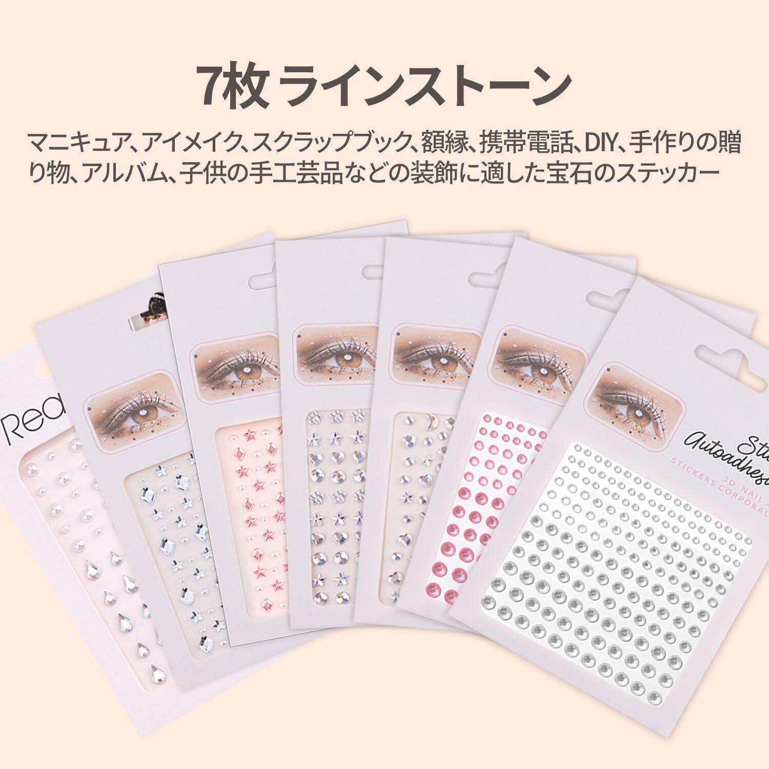 ラインストーンシール 7枚セット クリスタルフェイスステッカー キラキラ3Dグロースター ムーンストーンステッカー 自己接着 フェイスデコレーションパーツ DIY用品