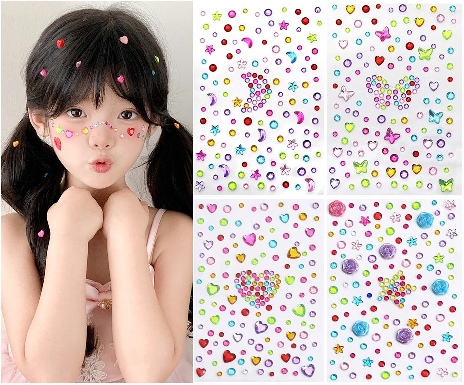【新春セール】顔 シール 3D キラキラ フェイスシール 4枚セット 接着剤不要のラインストーン 舞台メイク フラッシュドリル 顔面デコ 携帯電話装飾 DIY ギフト (A)
