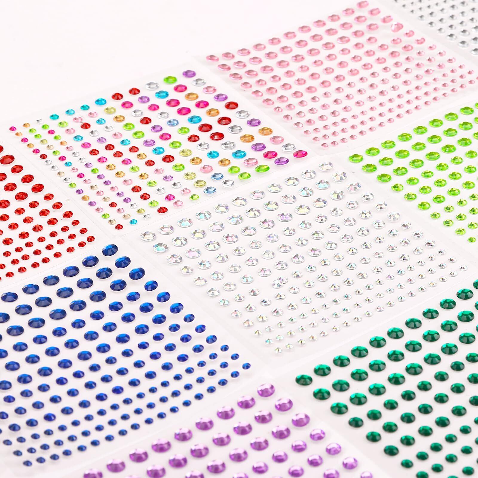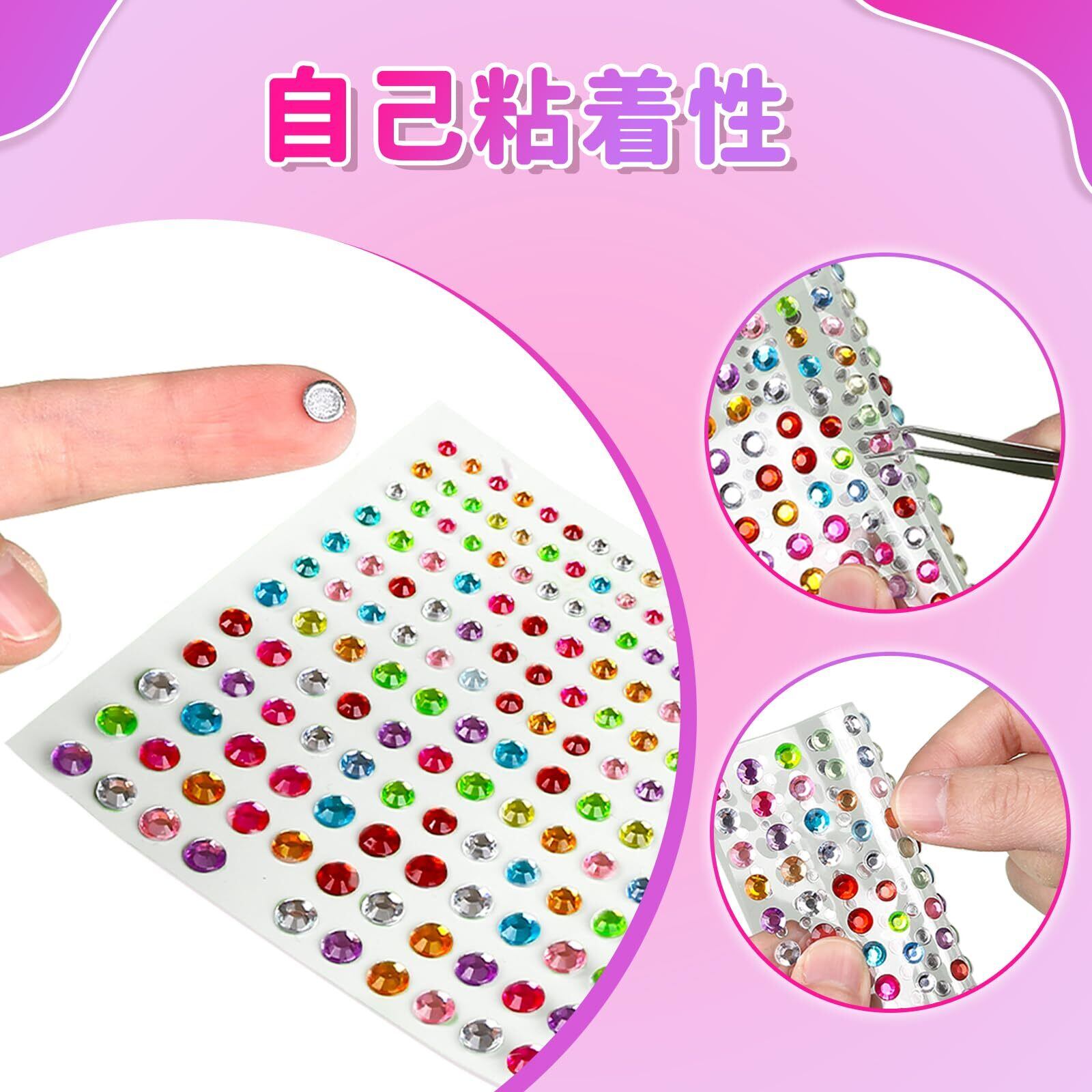 パッケージ内容: 1650 枚の自己粘着ラインストーン ステッカー。さまざまな色とサイズがあり、クラフトの可能性は無限大です。