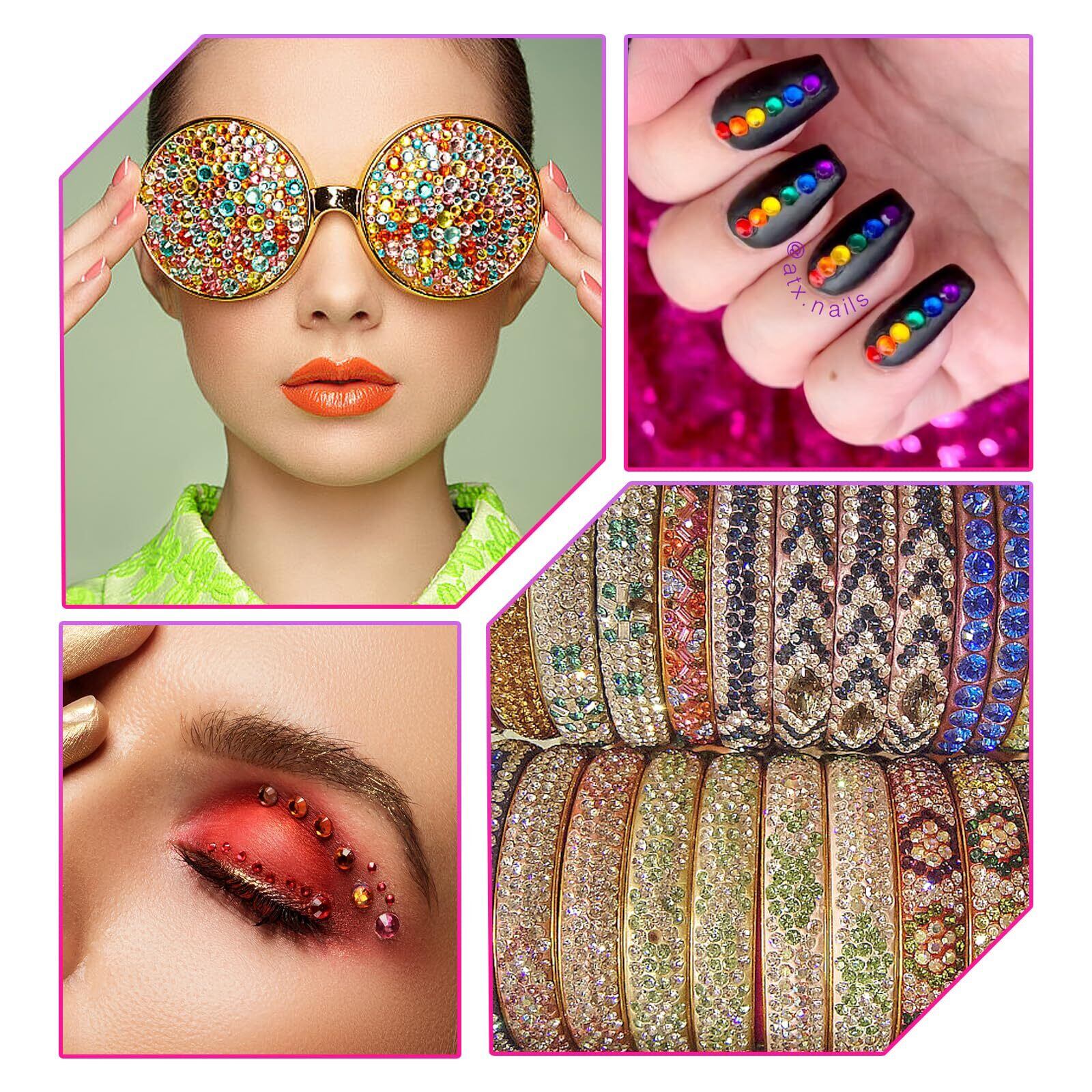 鮮やかな色: カラフルなラインストーンの詰め合わせ。青、赤、緑、ピンク、黄色、オレンジ、紫、黒など 14 色があり、DIY プロジェクトに輝きを加えます。