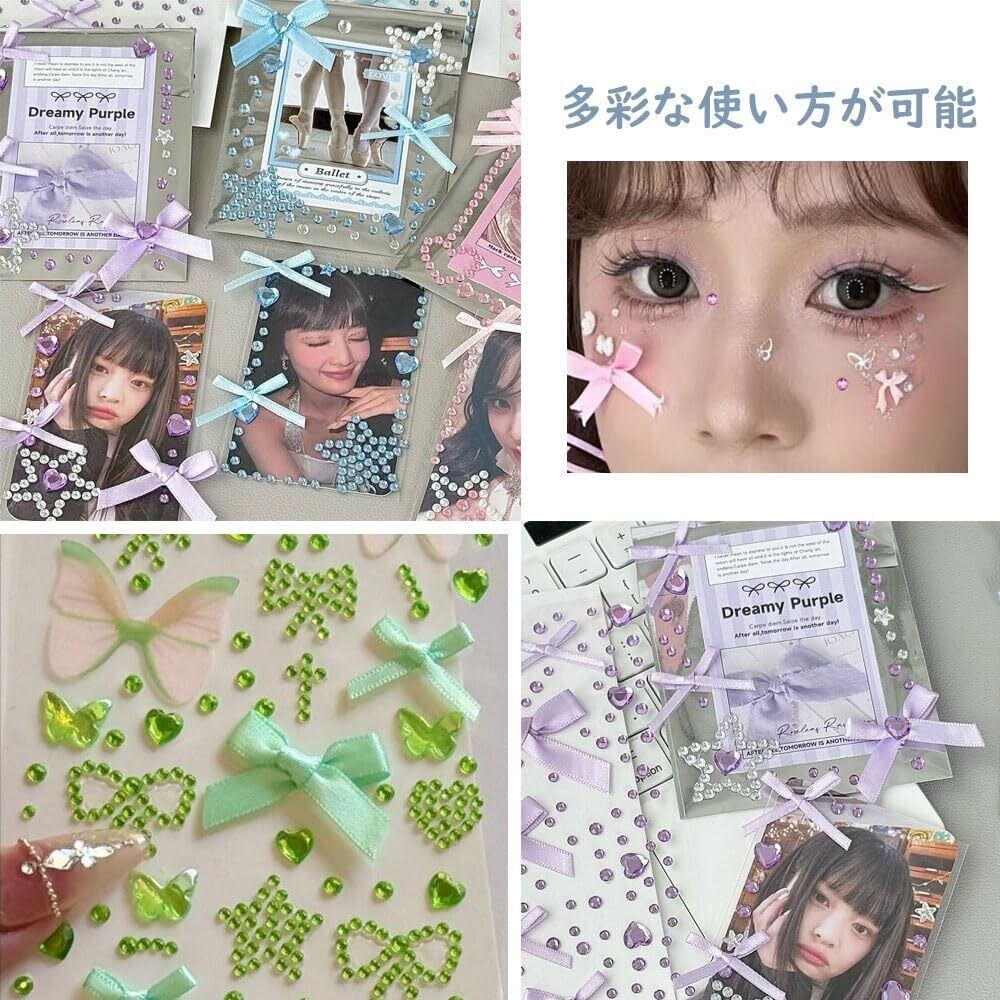 サムコス シー ル ラインストーン キラキラ 5枚セットかわいい 顔シール 3Dフェイスシール リボン 携帯電話装飾 撮影 舞台化粧 DIY用品 祝日の贈り物 (5枚A)