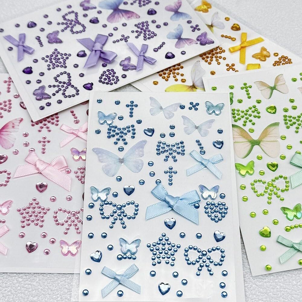 【特価商品】サムコス シー ル ラインストーン キラキラ 5枚セットかわいい 顔シール 3Dフェイスシール リボン 携帯電話装飾 撮影 舞台化粧 DIY用品 祝日の贈り物 (5枚A)